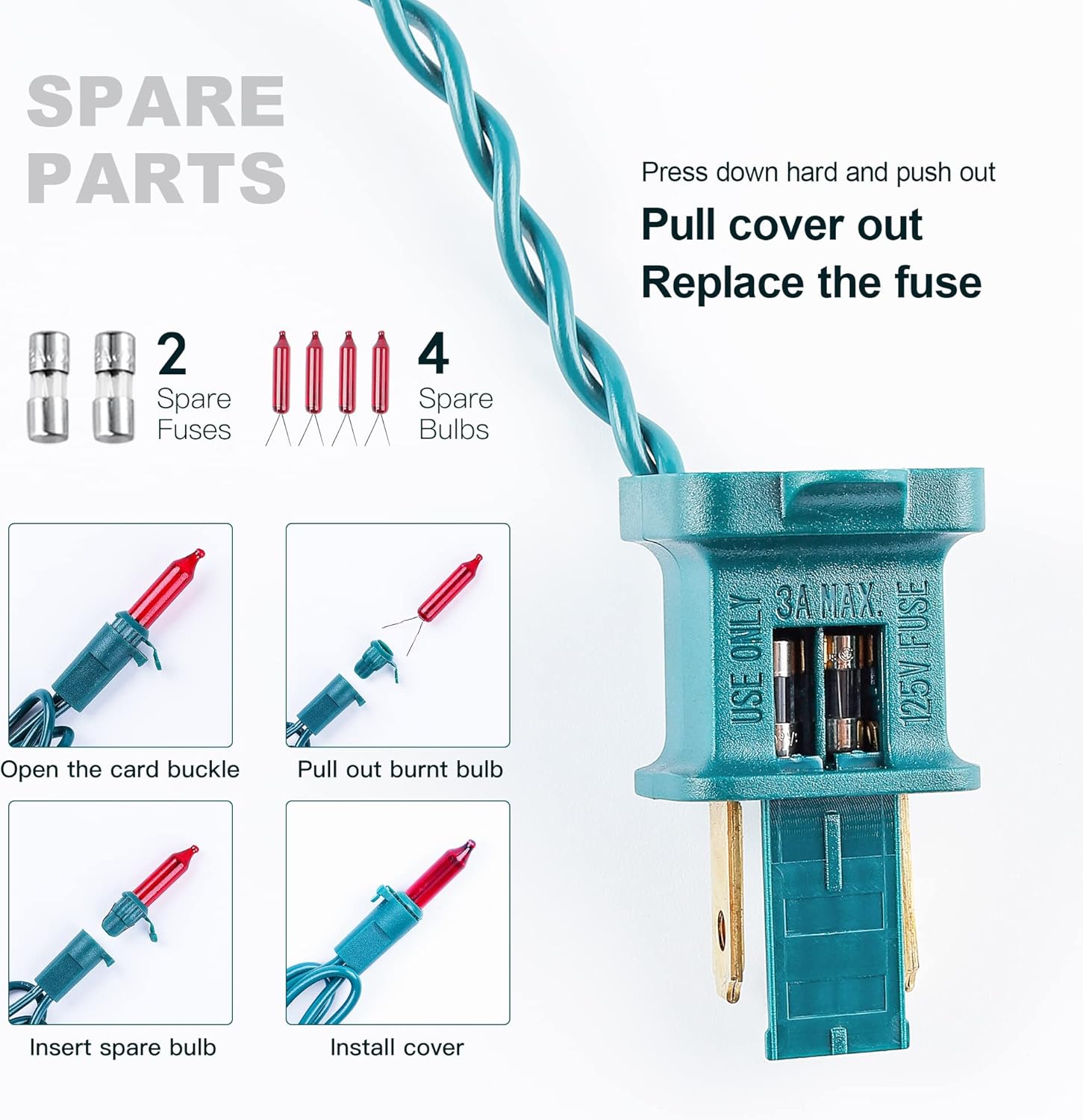- ๐Unique Design Christmas Lights: The bulb has a snap-on design and is very easy to replace. When one of our bulbs breaks, it doesn't affect the other bulbs. This is a very special design. You can replace damaged bulbs individually with the spare bulb or fuse provided by us.