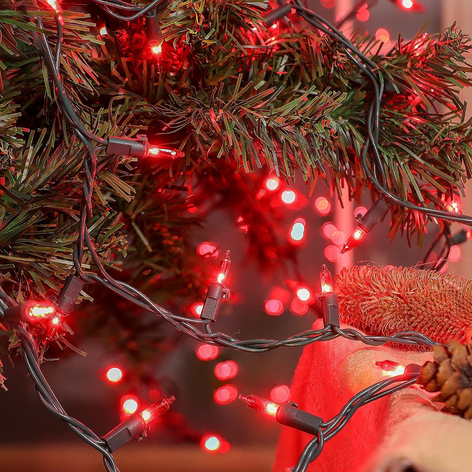- ๐50Count Mini String Lights: Light up the upcoming Christmas with Mimigogo 13ft 50count Red Christmas string lights is with Green Wire,which comes with 2Extra Bulbs and 2 Replacement Fuses. In addition, our wires is more durable compared with other string lights. You can use it for a long time without fear of burning it out.