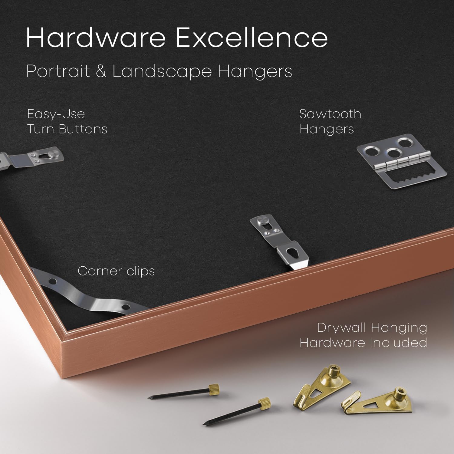 Homeforia 16x24 Picture Frame Rose Gold, High End Metal 16x24 Poster Frames with Mat 12x18 inch Photo, 16 x 24 Rose Gold Frame Matted to 12 by 18 Print, 24x16 Frame, Tempered Glass, Wall Kit, Set of 1