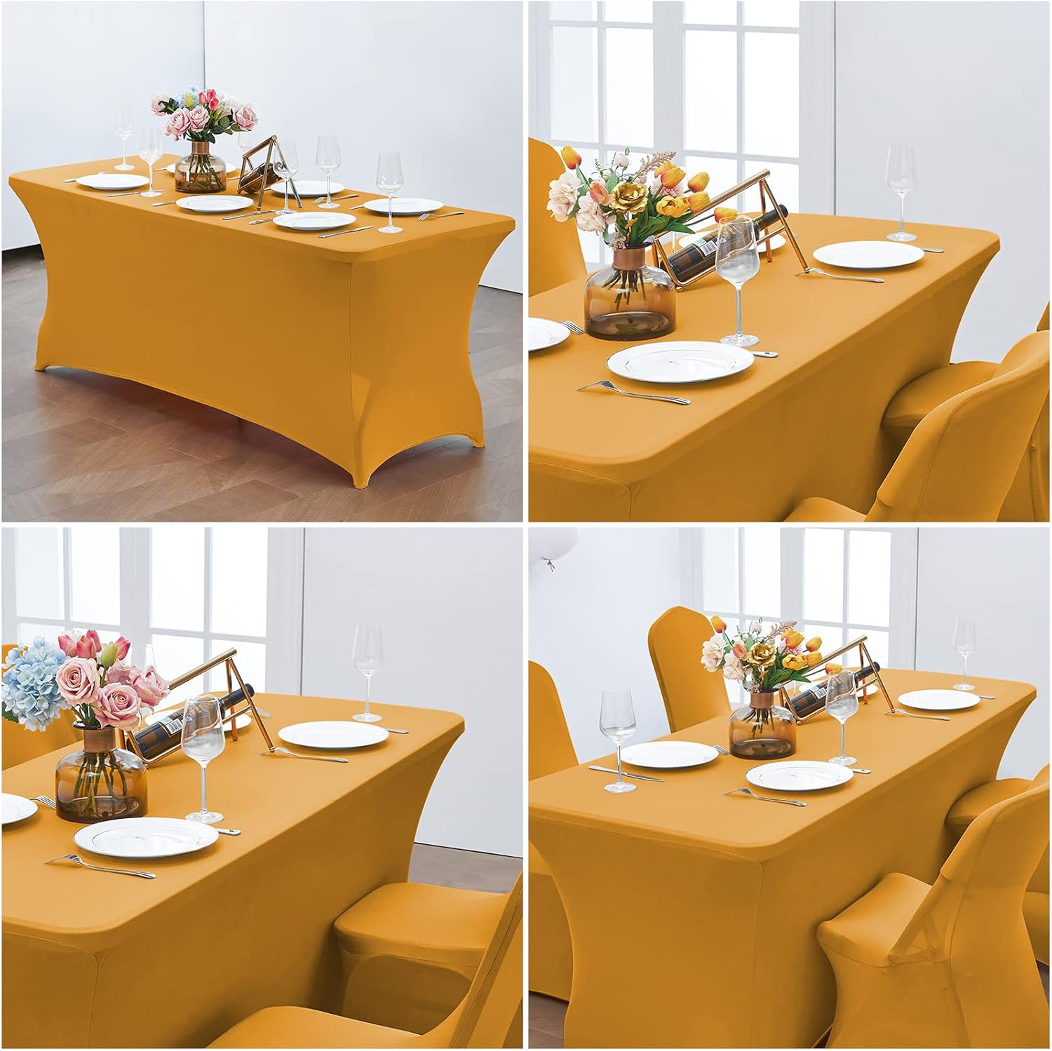 - [Easy To Set Up]: Our table cover is easy for you to set up,just wrap around your table, put 4 table legs into Elastic leg pockets,and ensuring that every part of the rectangular table is covered and spandex table cloth cover is displayed uniformly;It can be used for both indoors and outdoors