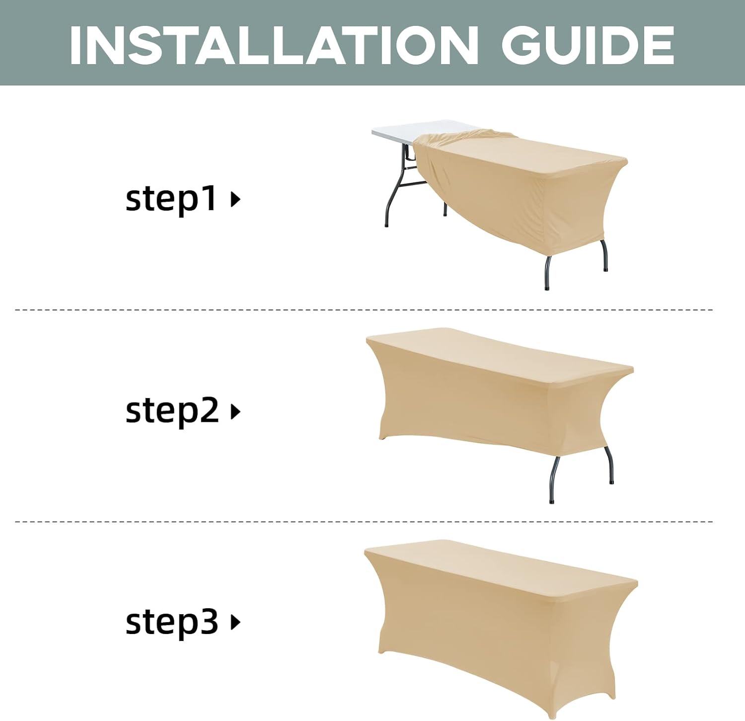 CWK 6FT Stretch Spandex Table Cover for Rectangular Tables - Elastic Fitted Tablecloth for Folding Tables,Wrinkle Resistant Table Cloth for Parties, Weddings, Banquets & Events (Champagne)