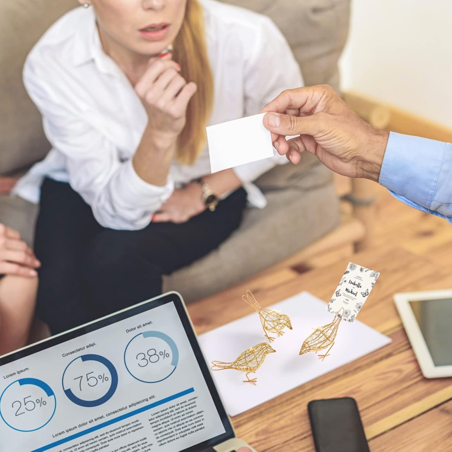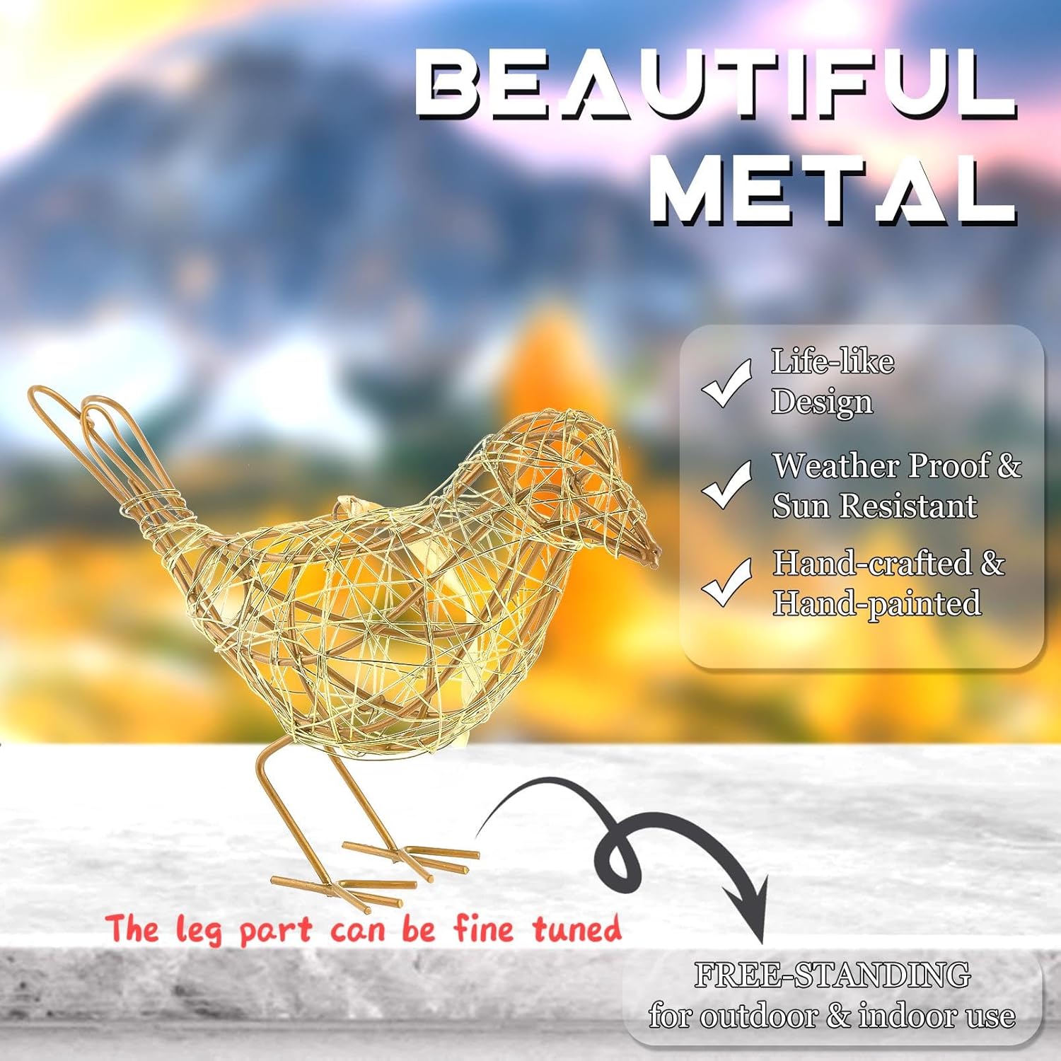 - [Luxury Metallic Accent] Handcrafted with gleaming gold-finish iron wires, these contemporary bird sculptures add refined elegance to modern farmhouse or glam interiors.