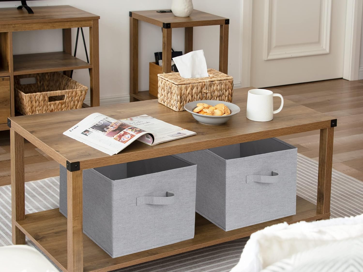 - The natural fiber and the inserted heavy-duty boards allow the storage bins to hold a weight of up to 30 pounds.