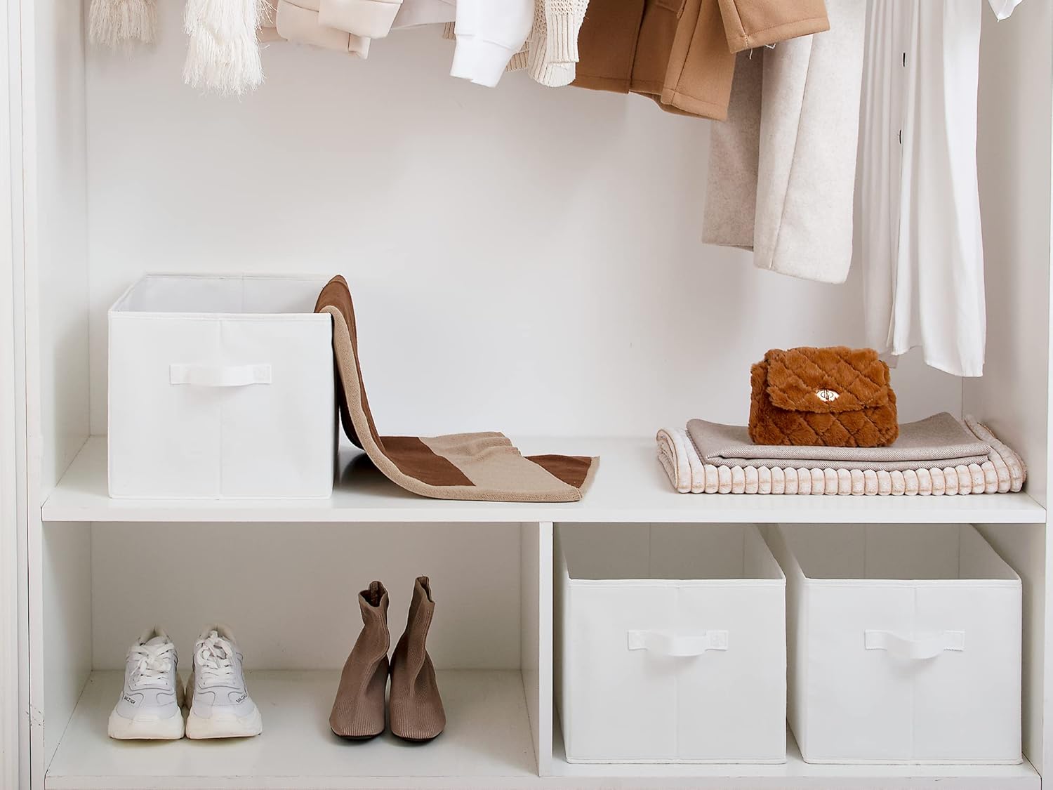 StorageWorks Storage Baskets for Shelves, Foldable Fabric Closet Storage Bins with Handles, Fabric Storage Bins Clothes Organizer, White, 3-Pack, Extra Large