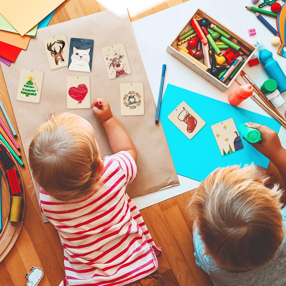 - ENJOY YOUR DIY FUN: Unfinished wood tags can DIY with different tools for Christmas ornaments, painting, drawing, writing, carving, etc