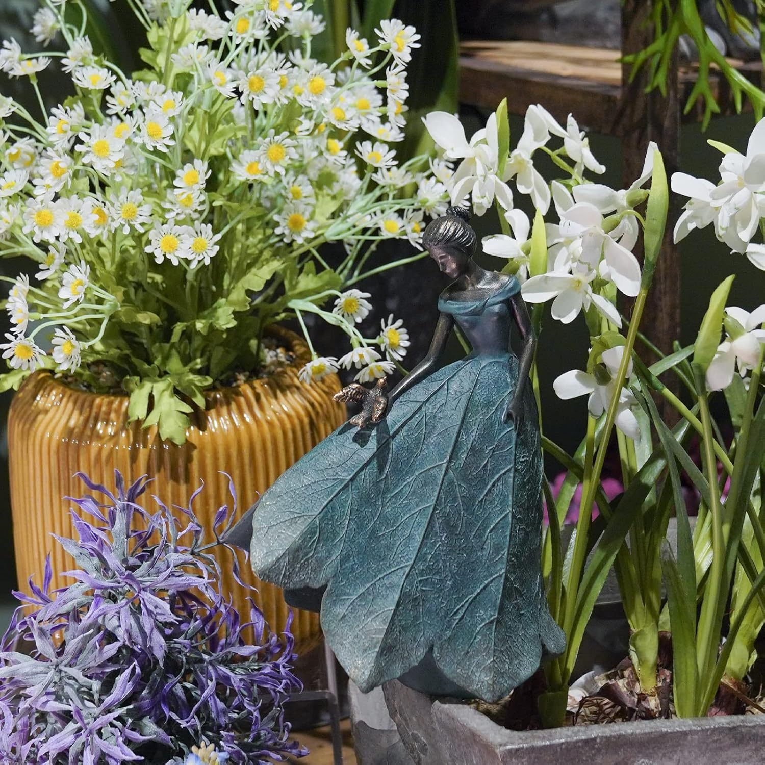 - Garden Fairy: The image of a calm angel girl holding birds and flowers, this home style is very attractive when placed on a table or shelf, suitable for elders, friends, classmates and all kinds of holiday, housewarming, garden gifts. To express love, intimacy, healing, courage, hope and so on. All the emotions of a good life.