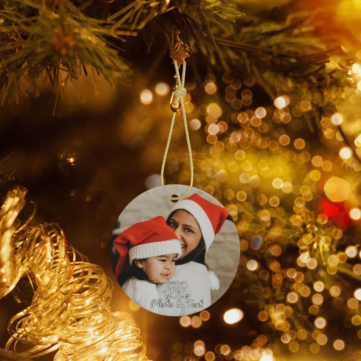 - ๐ท CUSTOM PHOTO ORNAMENT & KEEPSAKE - Click on the " Customize Now " button, Upload your favorite photo and we will turn your happiest memories into a customized Christmas Ornaments. Make a one of a kind gift with photos, names and quotes of you and the one you love.