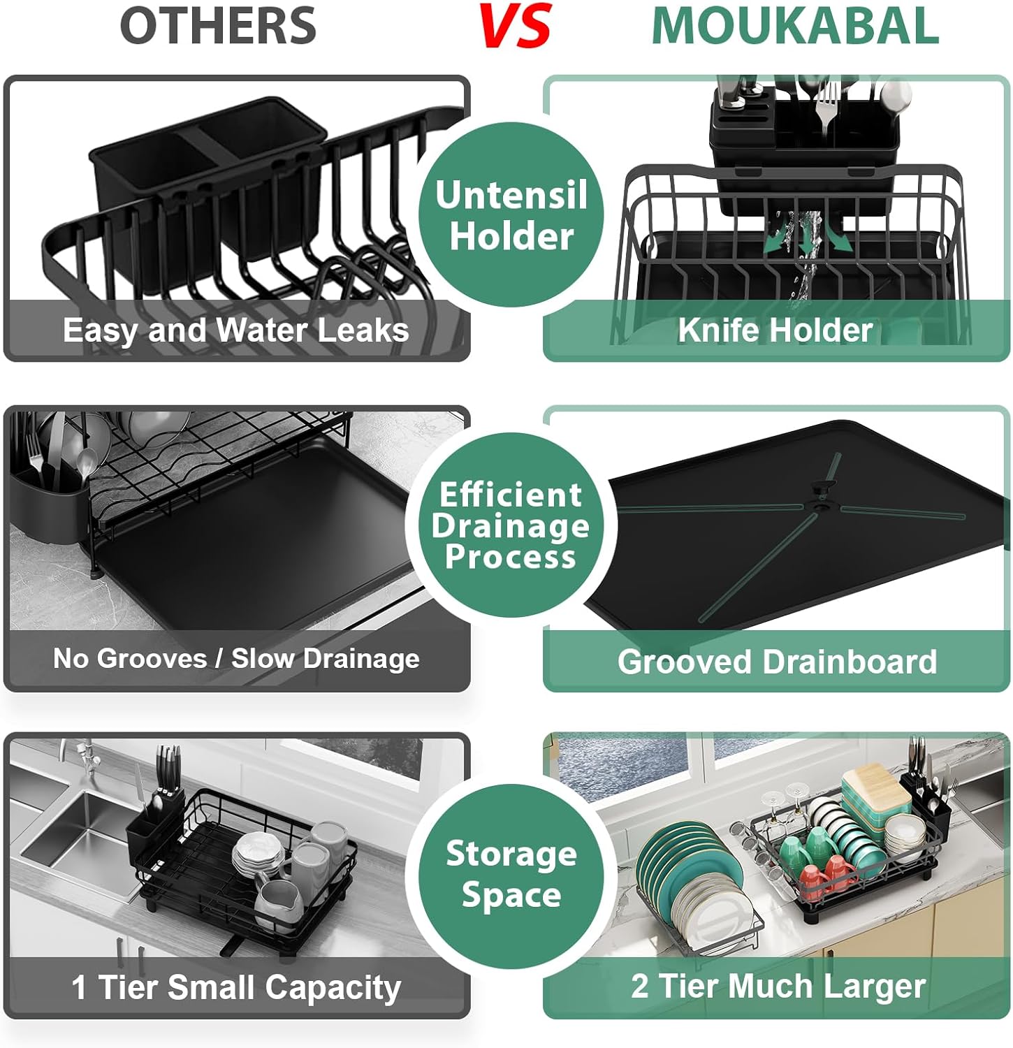 MOUKABAL Dish Drying Rack, 2 Tier Dish Rack, Large Dish Racks for Kitchen Counter, Dish Drainer with Removable Utensil Holder, Drainboard (Grey)
