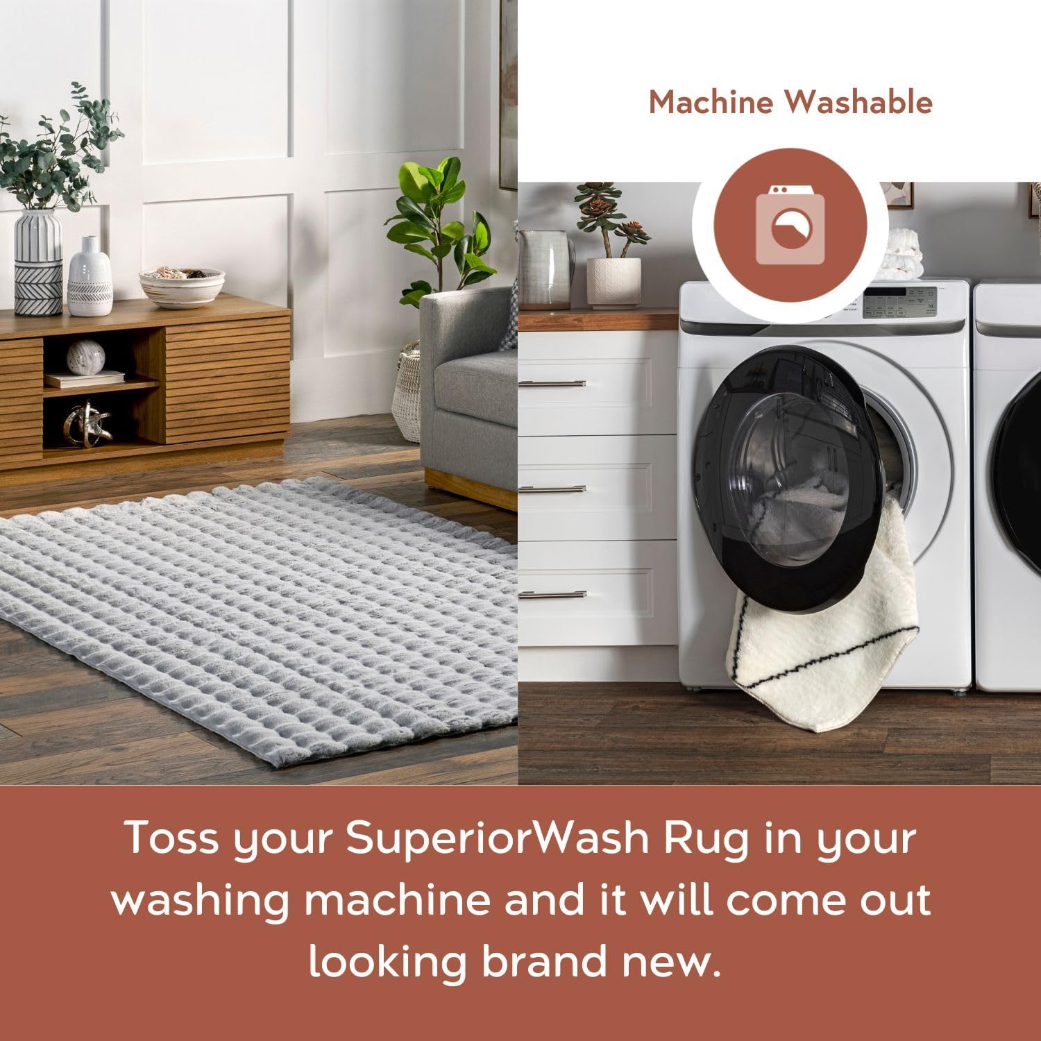 - Machine Washable for Easy Care: Maintaining this rug is a breeze with regular vacuuming and spot cleaning to preserve its beauty. For tougher stains, just toss your rug in the washing machine on a gentle cycle with cold water. We recommend line drying or using the air-only drying cycle without heat.