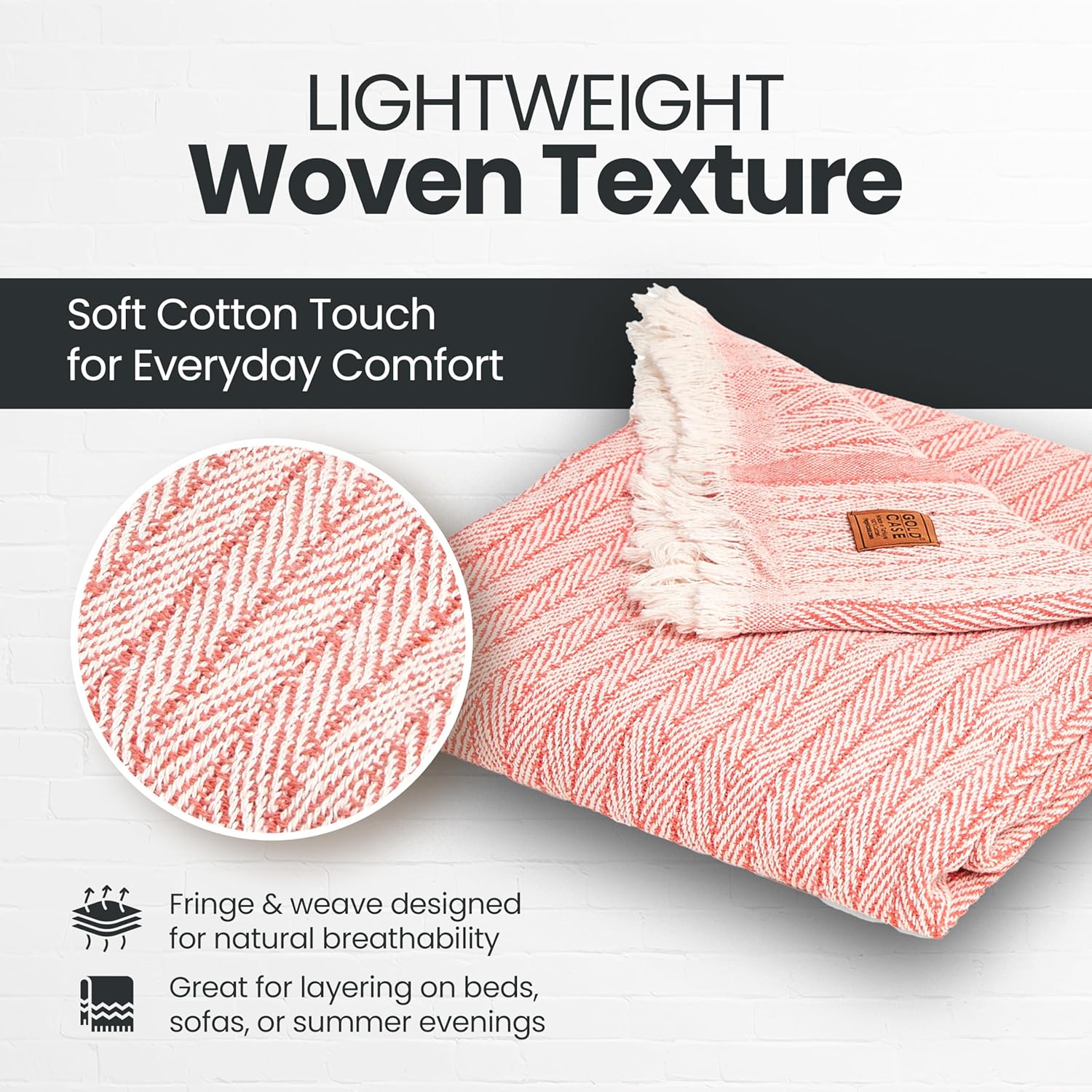 - LIGHTWEIGHT LAYERS FOR RELAXED MOMENTS: Woven from 100% recycled Turkish cotton, this breathable and cute throw blanket adds a soft, textured touch to your space; made for layering on the couch, tossing over your shoulders, or adding a laid-back look to your decor