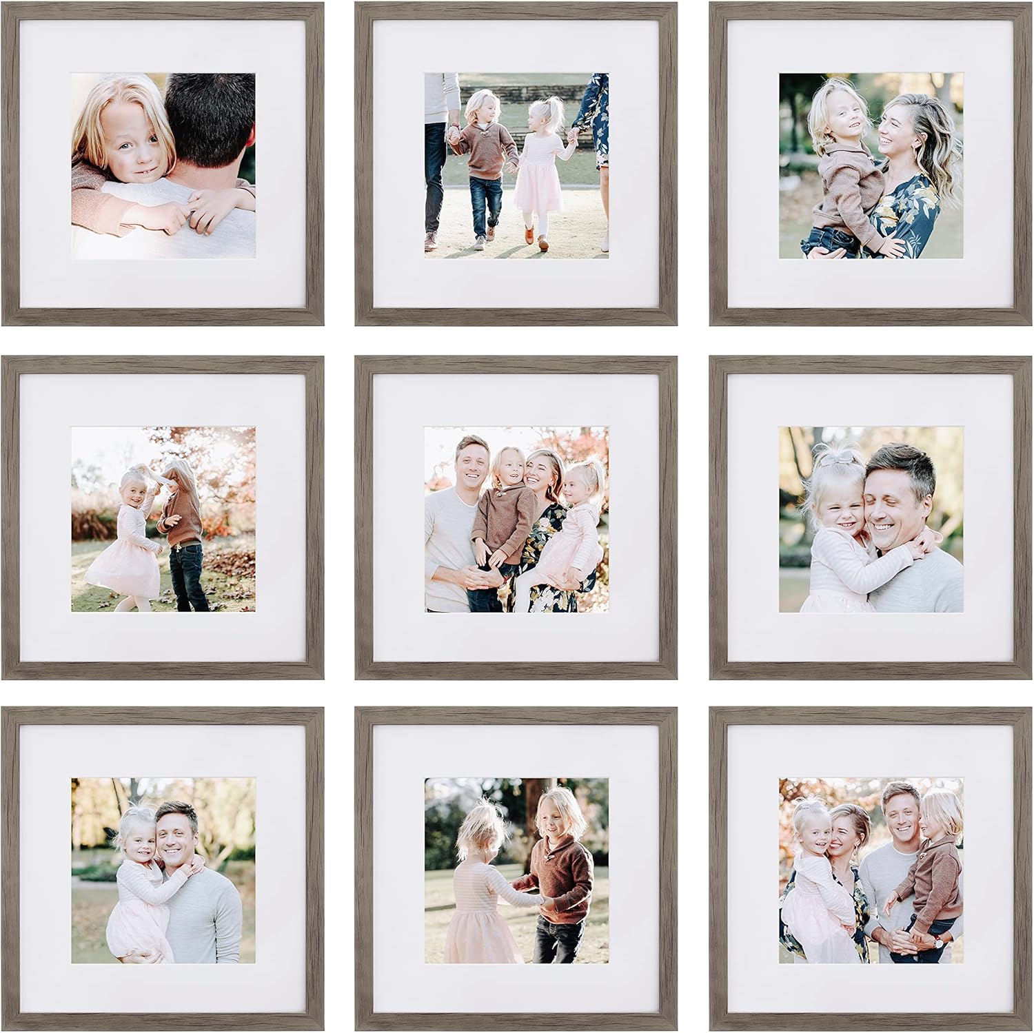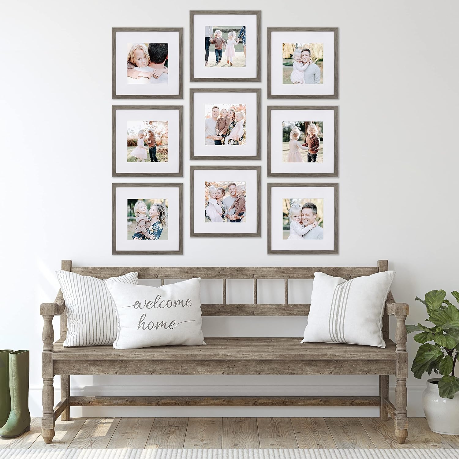 Sheffield Home 9 Piece Gallery Wall Frame Set, 12x12 Inch, Natural
