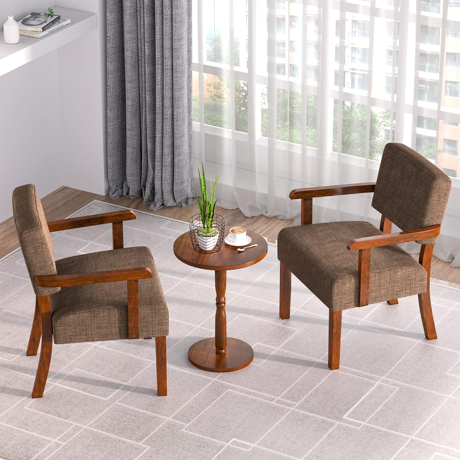 Accent Chair Set of 2 with Table, Living Room Chairs with Soft Seat & Armrests for Living Room Bedroom Reading Room Waiting Room (Brown), (AC01)