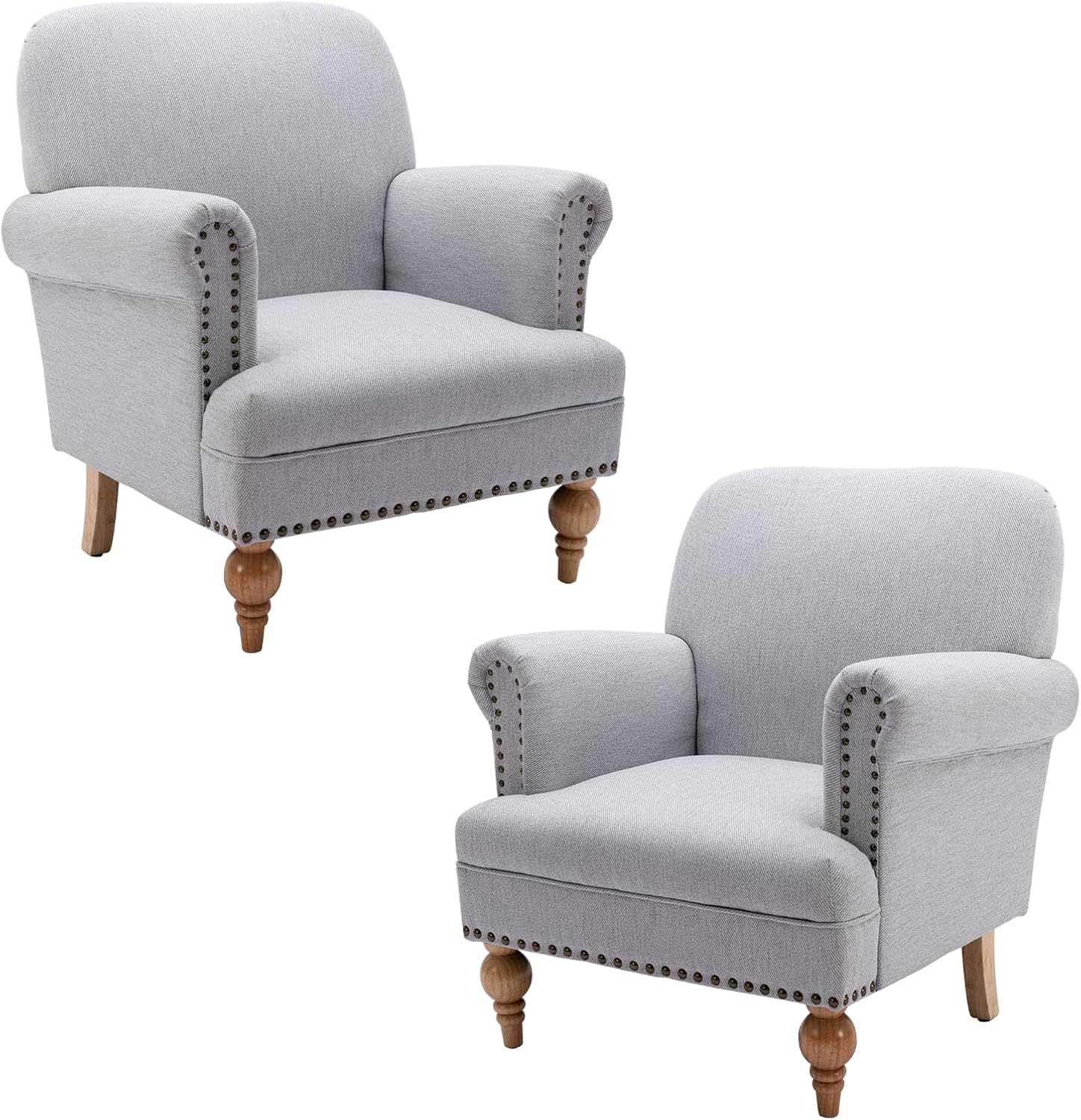 chairus Linen Accent Chair for Living Room Set of 2 Upholstered Mid Century Modern Single Sofa Chair with Solid Wood Legs Comfy Reading Chair Armchair for Bedroom/Office Room/Recption/Lounge, Grey