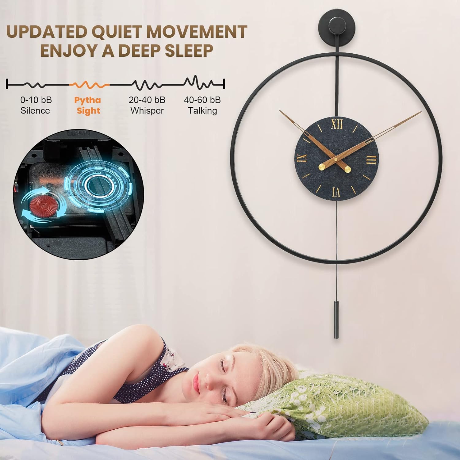 - 【Minimalist Style Dial Design】Our wall clock large adopts high temperature metal paint, the modern wall clock body is polished carefully,and the paint surface is not easy to fall off,full of texture.The dial uses Roman and fashionable simple design.No matter moving into a new home or looking for a gift, make an accent statement in your entryway,office,corridor,kitchen, living room,dining room or bedroom with a stylish and decorative Traditional piece from Pytha Sight.