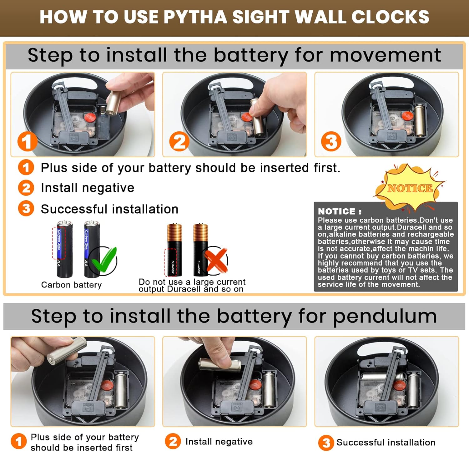 - 【Our Promise Service】Please be sure to watch the installation video after purchase.If your wall clock with pendulum can't swing or hang, please contact us at the first time and we will help you solve the problems! If the black wall clocks don't work,please contact us,we'll offer you after-sale service and our team will give you satisfactory after-sales service within 24 hours.
