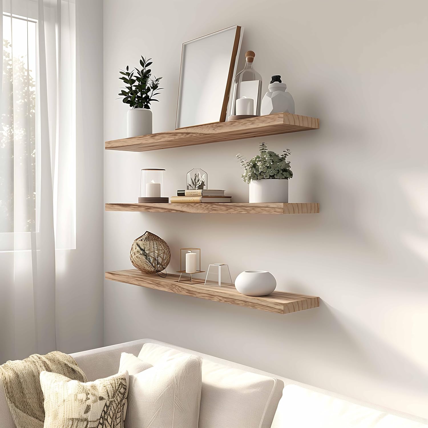 - A Gift for Family or Friends - The rustic wood floating shelves is not only a esthetic home decor but also a great gift for your family or friends.