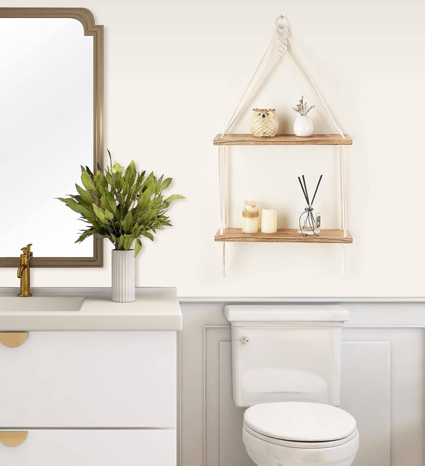 - Great Gift: Macrame 2 tier hanging shelf is very suitable for people who love boho style. If you are looking for the perfect decorations in a minimalist style, or wanna give gifts to people who like urban bohemian decorations or unique home furnishings, this will be a great housewarming gift.