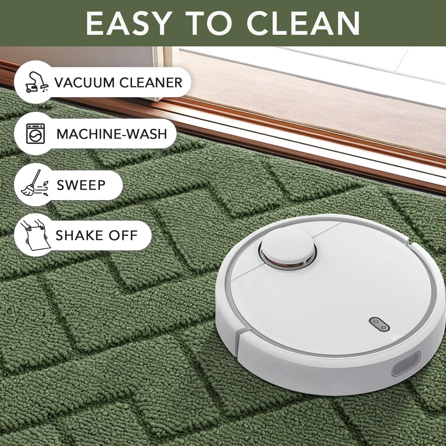 hicorfe Front Door Mat Outside Entrance,32"x40" Absorbent Muddy Dirt Resist Welcome Door Mats Outdoor Indoor,Stain and Fade Resistant,Non Slip Backing Entry Mat Doormat for Entryway(Green)