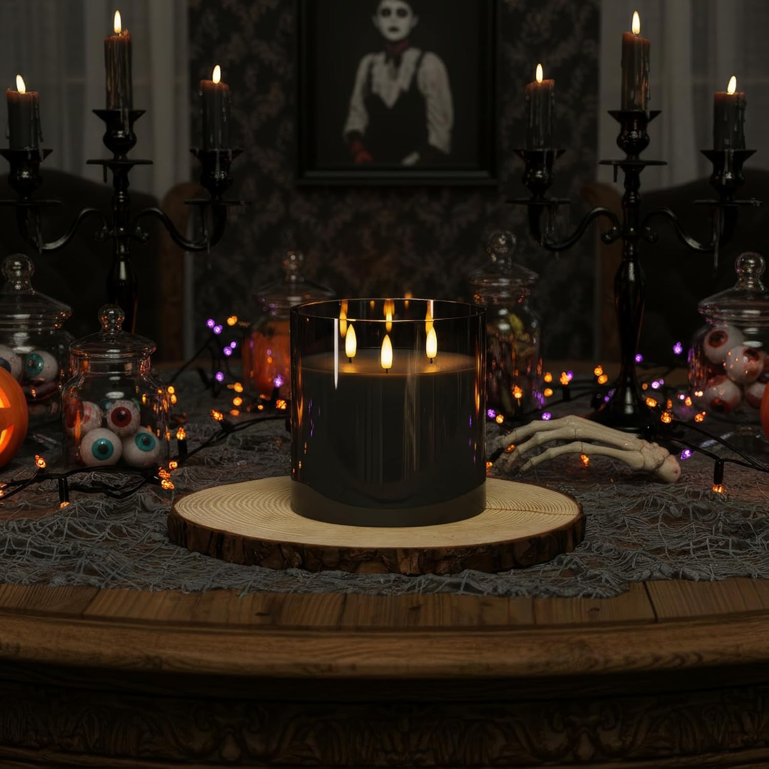 Homemory 6X6'' Extra Large Flameless Candle with 3 Wicks, Glass LED Pillar Candle, Real Wax Battery Operated Candle with Remote Control and Timer, Grey