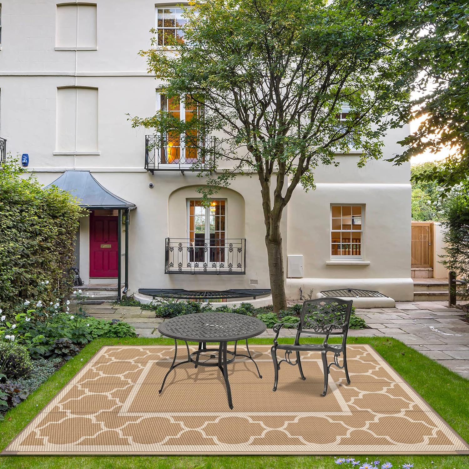- Versatile Settings:Upgraded polypropylene ensures breathability and fast drying in this outdoor rug waterproof design. Perfect for the patio, deck, backyard, garden, porch, beach, RV, picnic, or camping. Elevate your outdoor experience with GENIMO—whether you're furnishing a peaceful retreat with pamapic outdoor furniture or outfitting your weekend getaway with stylish rv essentials.Also great as fall outdoor decor or a key element in your fall decor transformation