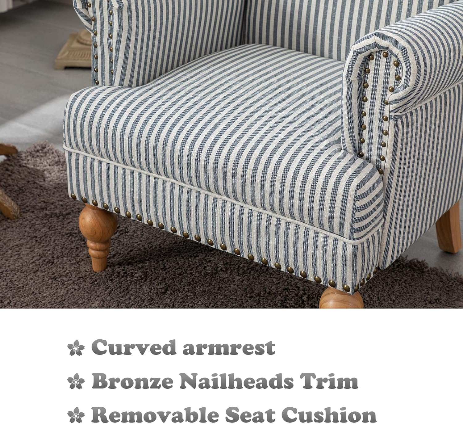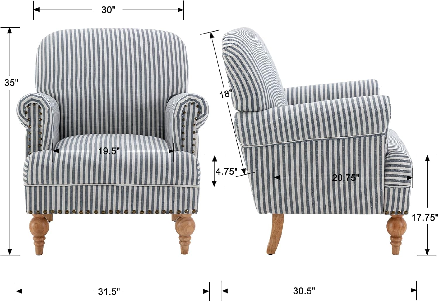 chairus Linen Accent Chair for Living Room Upholstered Mid Century Modern Single Sofa Chair with Solid Wood Legs Comfy Reading Chair Armchair for Bedroom/Office Room/Recption/Lounge, Blue Stripe