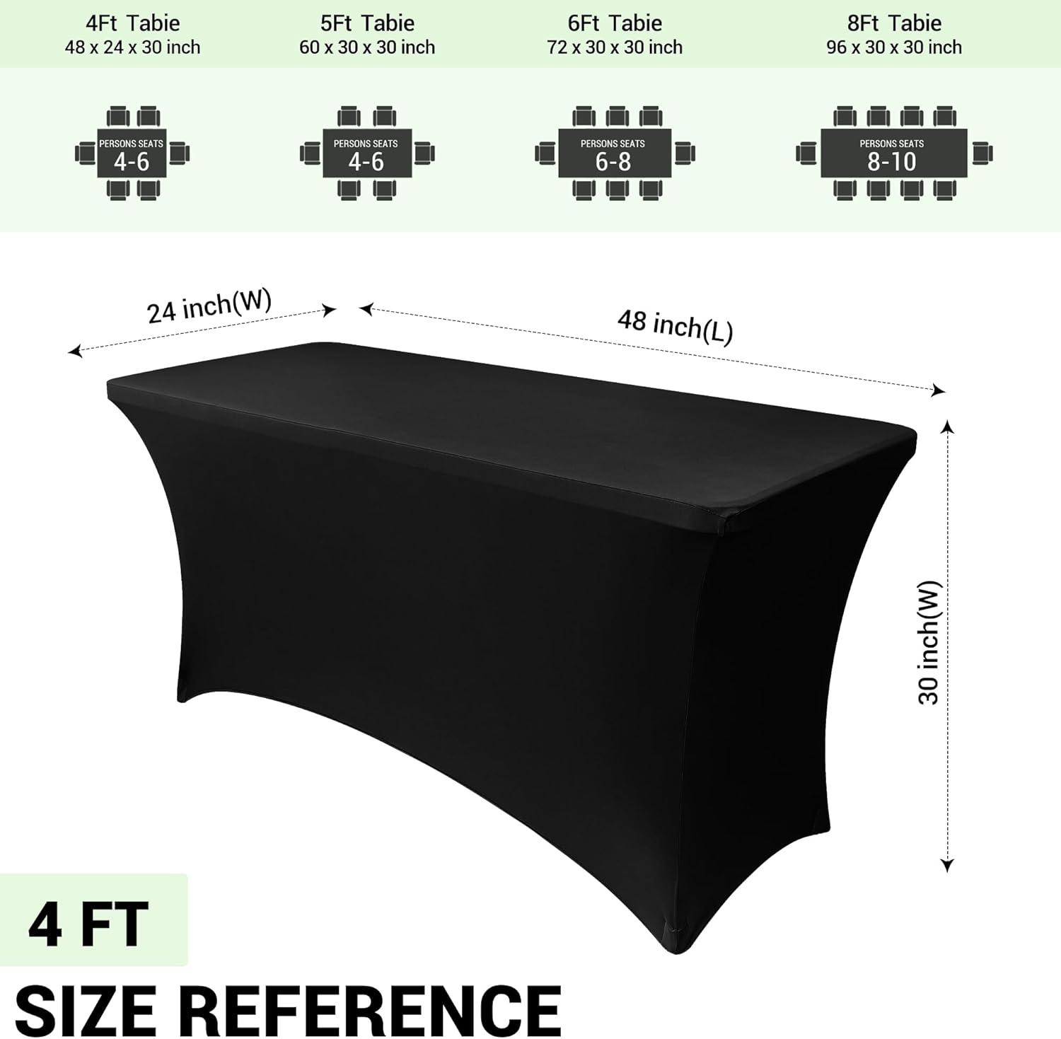 Obstal 4ft Stretch Spandex Table Cover - 4 Pack Universal Rectangular Fitted Tablecloth Protector for Wedding, Banquet and Party, Black