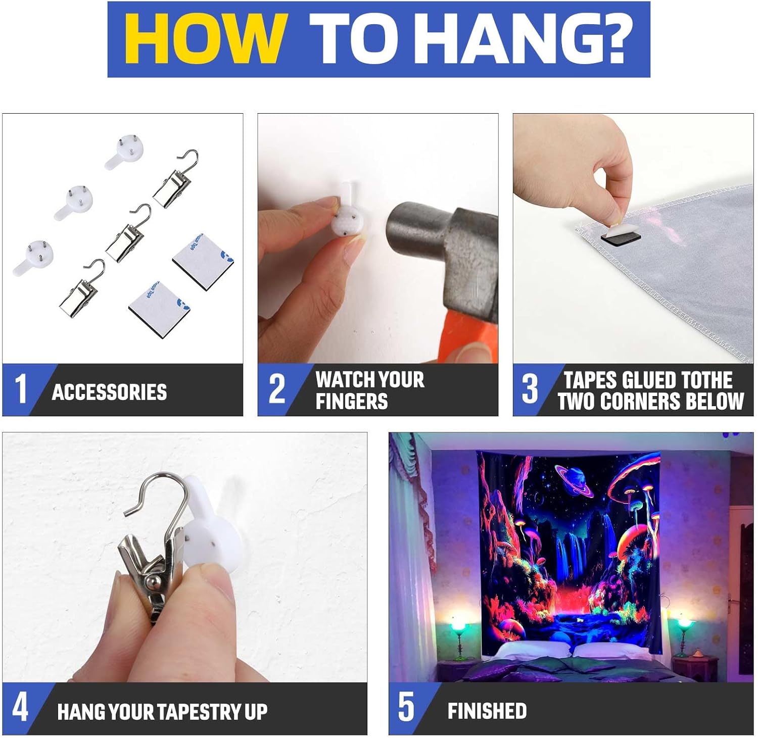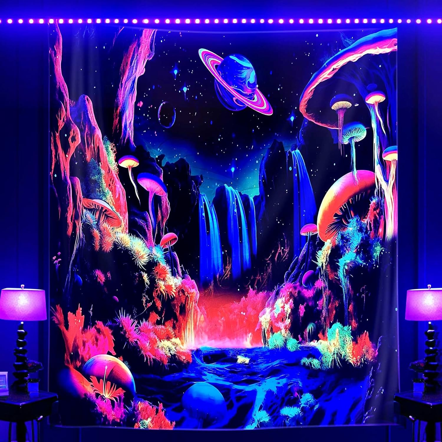 - π Brighten Up Your Space: ADDWel blacklight tapestry adds a vibrant and glowing touch to any room. ADDWel tapestry is printed with a UV-reactive ink that creates a neon-like effect under blacklight. Perfect for parties, raves, and other events that require a fun and unique atmosphere.