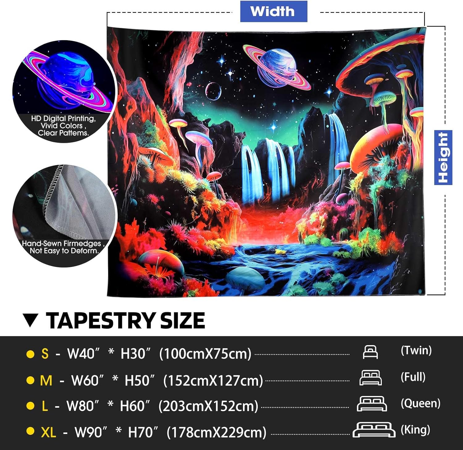 ADDWel Blacklight Mushroom Planet Tapestry, Black Fantastic Tapestry Glow In The Dark, UV Reactive Black Light Posters Wall Hanging for Bedroom Dorm Living Room Backdrop Decor