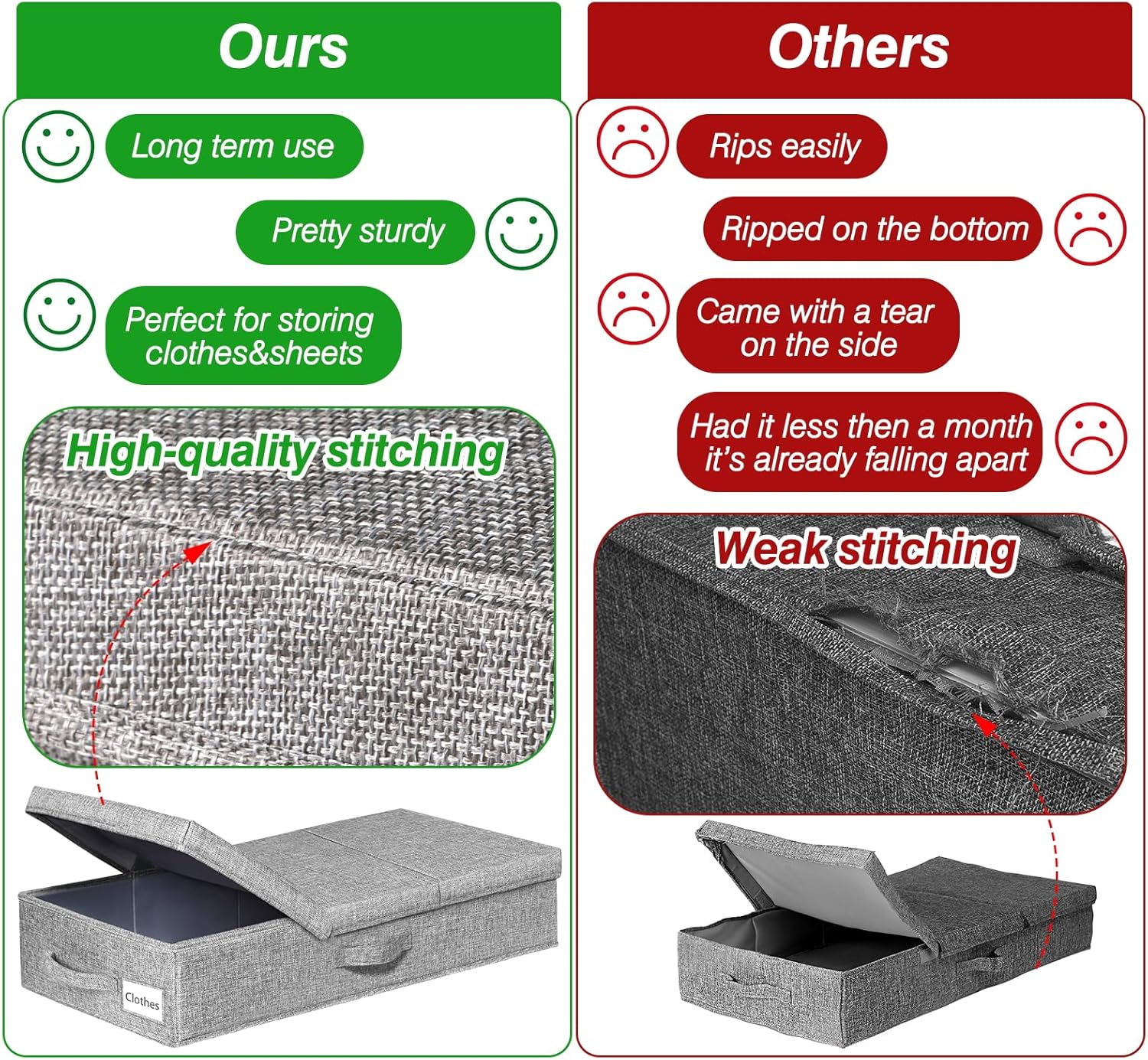 - MULTIPURPOSE STORAGE: Large, durable containers for organizing are perfectly sized to slide right under the bed. The storage bins underbed is perfect for use as under bed shoe storage organizer, under bed blanket storage, clothing storage under bed, under storage bins under bed, under the bed drawers stackable storage bins with lids, under crib storagen