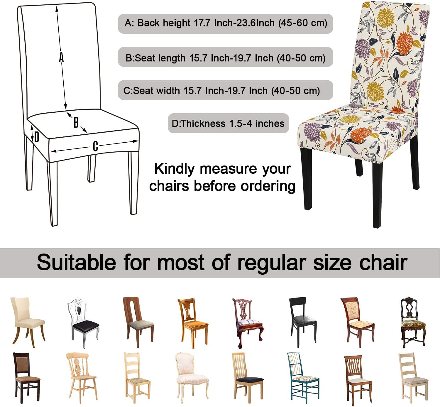 - 【Suitable for Chair Size】- Chair back height 17.7 Inch-23.6Inch (45-60 cm), chair-back width 15.7 Inch-19.7 Inch (40-50 cm),Inch Chair seat length and width 15.7 Inch-19.7 Inch (40-50 cm).Thickness 1.5-4.5Inch (4-12 cm). Please check the measurement guide in the item picture before order..(Please allow 0.5-1 inch error due to manual measurement.)