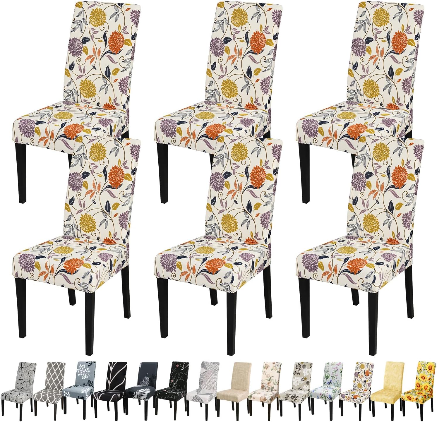JQinHome Pattern Chair Covers for Dining Room Set of 6, High Stretch Removable Washable Parsons Chair Slipcover for Home Party Hotel Wedding Ceremony (Flower,6PCS)