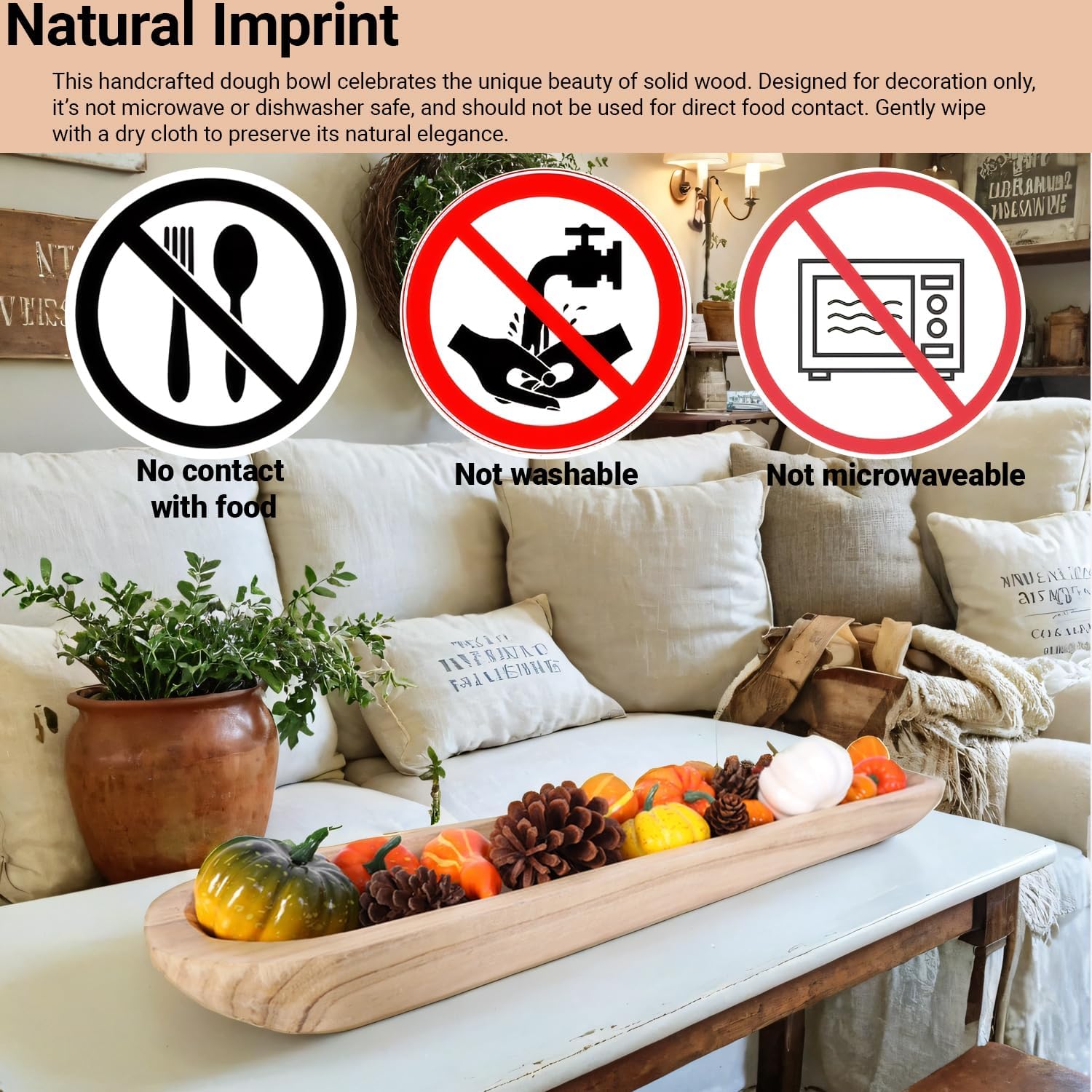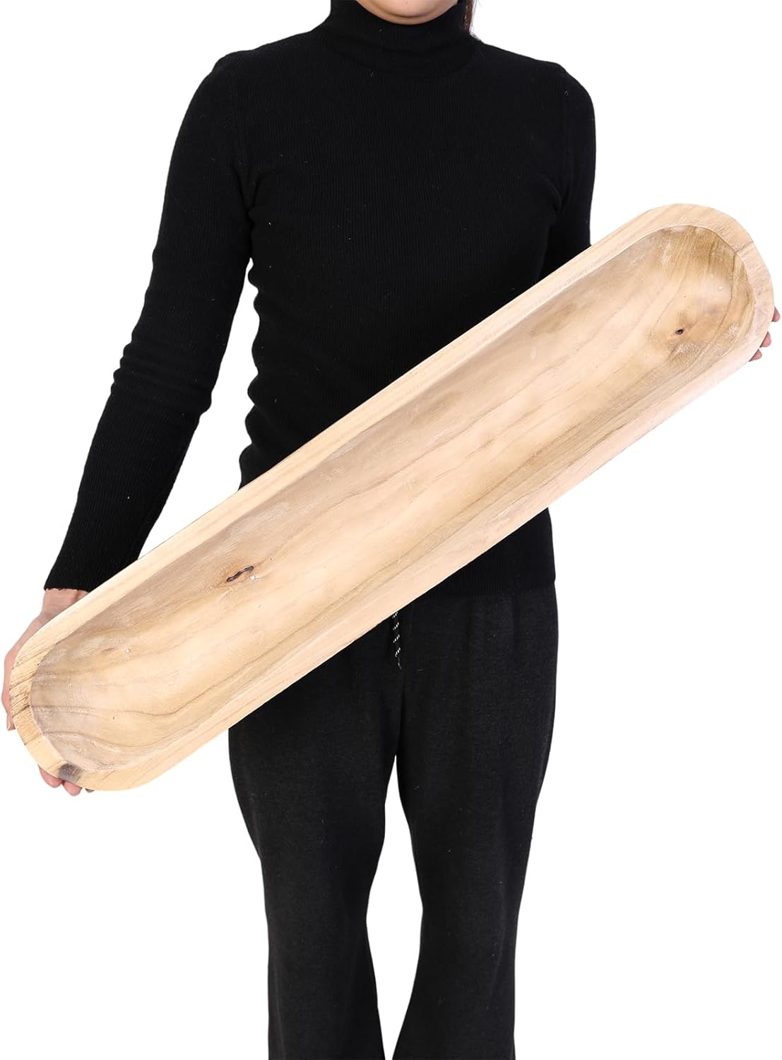 - 【Multipurpose】Wooden dough bowls for decor centerpiece on kitchen counter, entryway table and MORE! A long wood bowl is also good as a trinket tray for small objects such as keys, jewellery, and cosmetics. It can be placed anywhere in the home, such as the dining room, living room, bedroom, garden, etc.