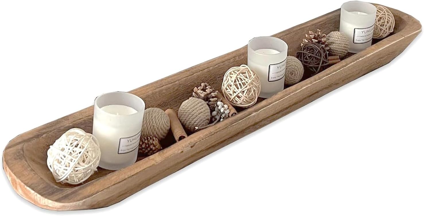 - Multi functional wooden noodle bowl : Multi functional decoration and use. Large noodle bowls of various lengths can accommodate a large amount of items in any season. This wooden noodle bowl is a perfect supplement to the decoration of your home, restaurant, living room, or farmhouse. It can also store daily small items such as keys, watches, mobile phones, etc. It can also be given as gifts to friends, classmates, and relatives.