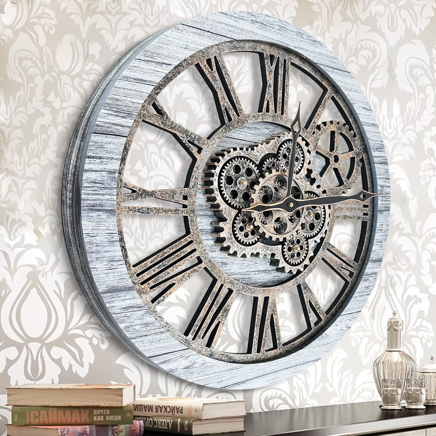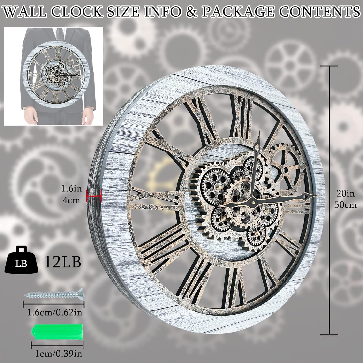 HOIBAI Wall Clock, Clocks for Living Room Decor 20 Inch Big Moving Gears Clock Farmhouse Vintage Rustic Wall Clock for Home Bedroom House Kitchen Wall Decor