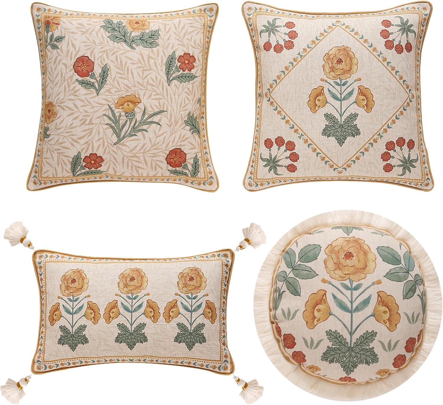 patdrea Designer Pack of 4 Throw Pillow Covers,Beige Vintage French Soft Linen Pillows Cover with Daisy Floral Pattern,Vintage Square Farmhouse Decorative Pillowcase for Couch,Bed,Living Room