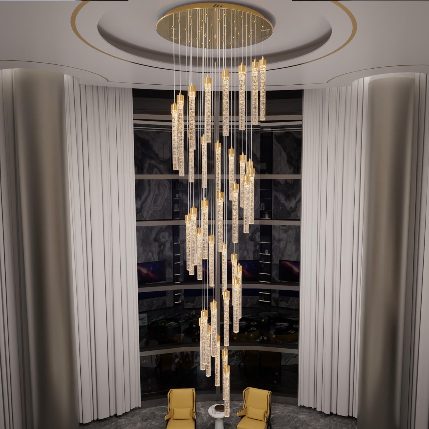 Chandeliers for Living Room 38-Lights Modern Crystal Light Extra Large Chandelier Light Fixture Entryway Foyer High Ceiling Chandeliers Lighting with Sloping Ceiling (Gold Chandelier)