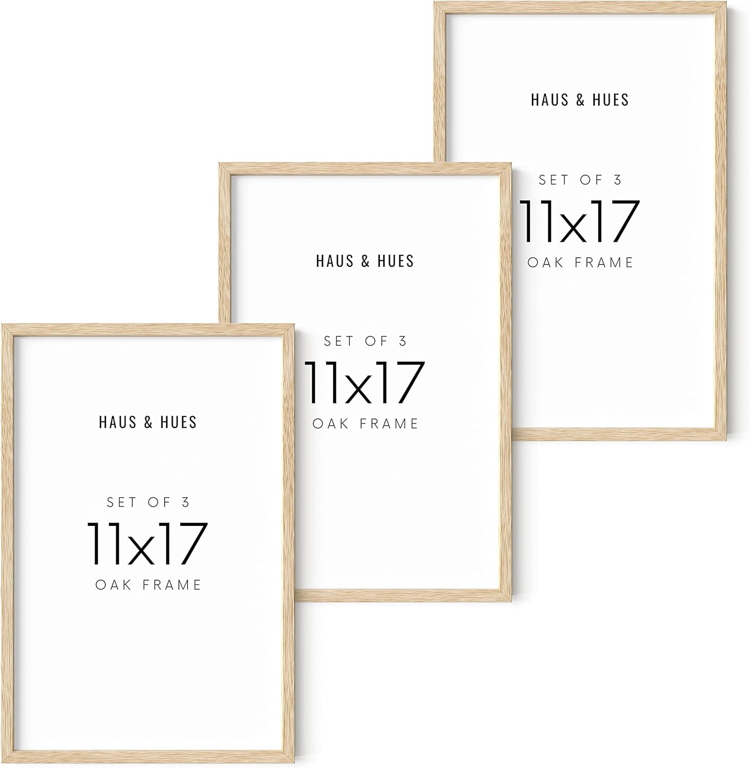 HAUS AND HUES Set of 3 Wooden Frames - 11x17 Natural Wood Picture Frames, Oak Beige