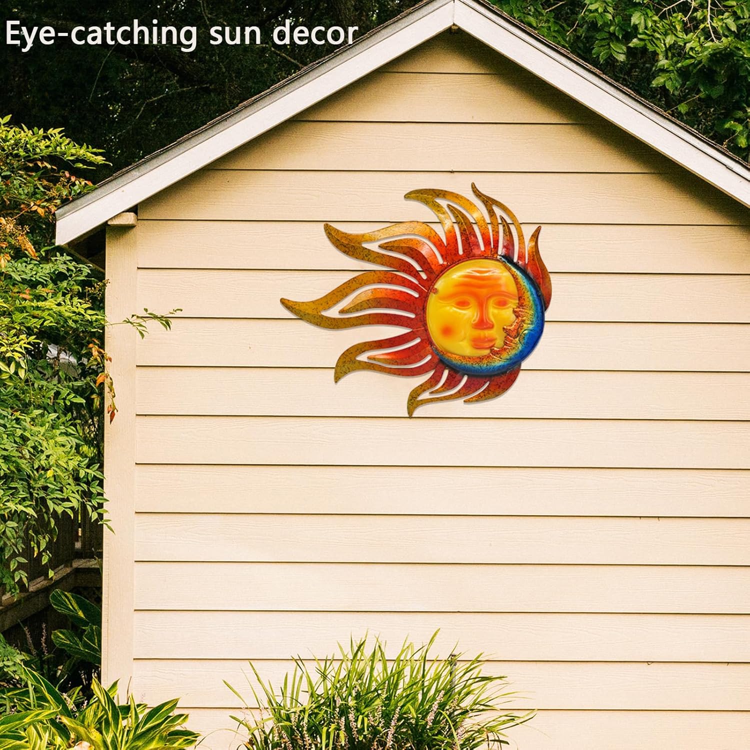 Tuokiuhn Large Sun Metal Outdoor Wall Art Decor Metal Sun Moon Wall Decor Outdoor Art Hanging Living Room Garden 28 Inch