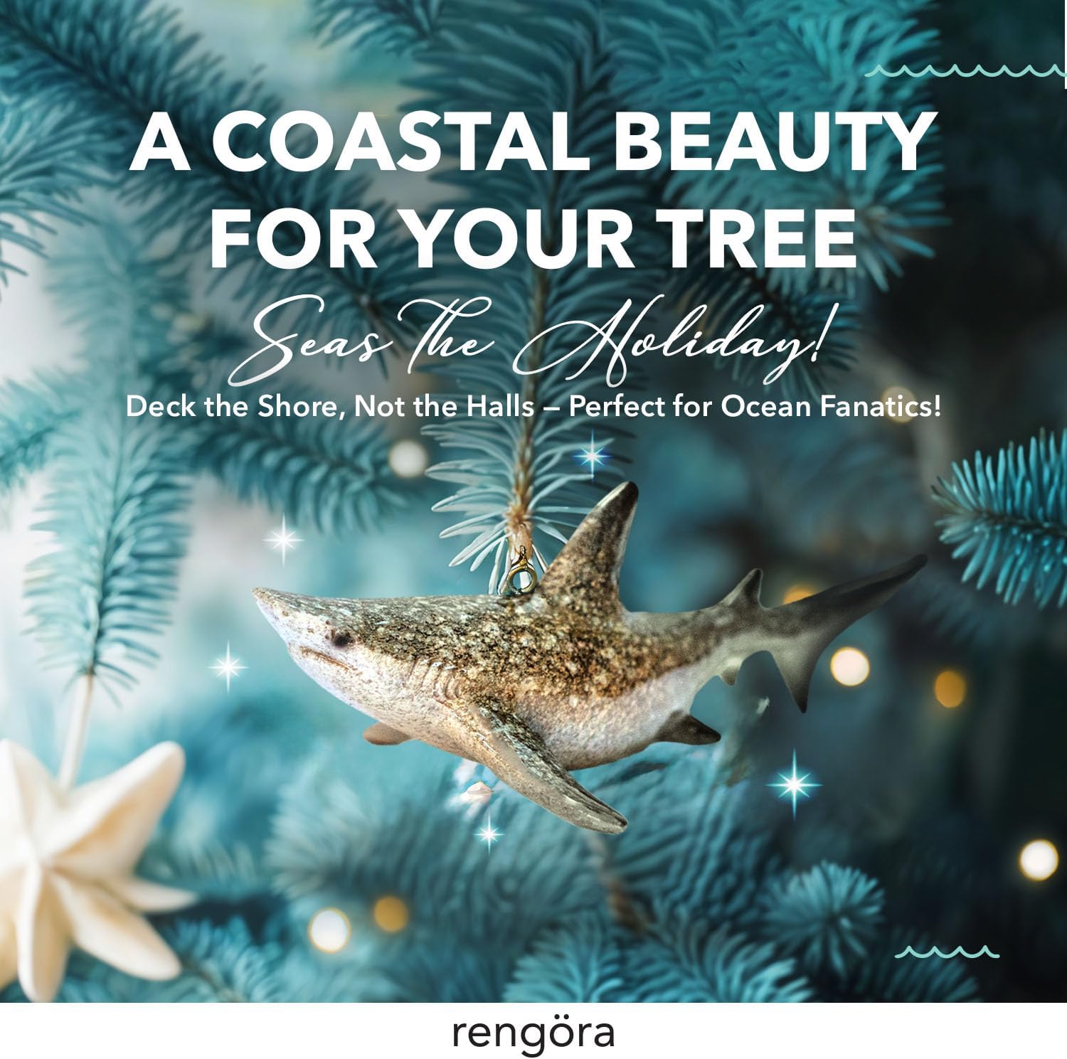 Hand-Painted Beach Christmas Ornament – Coastal Tree Decoration for Ocean Lovers – Unique Nautical Ornament for Christmas Tree or Stocking Stuffer Gift (Shark)