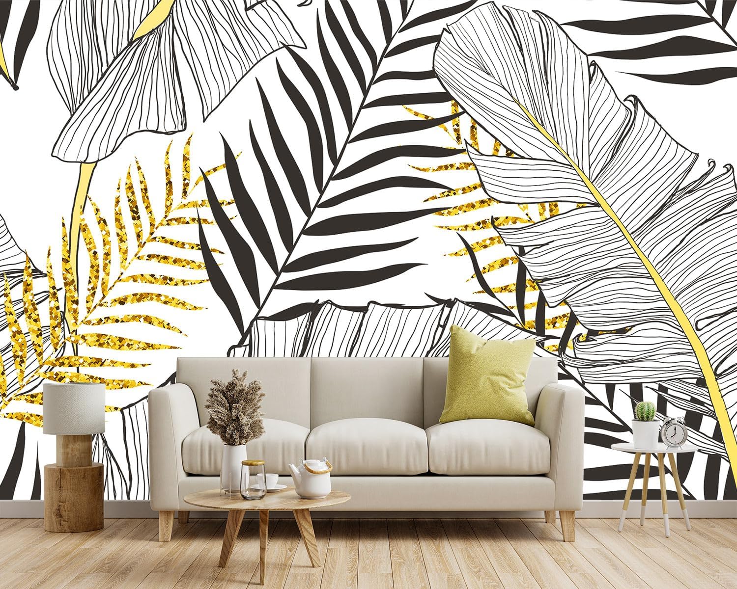 -Black and Gold Tropical Botanical Banana Leaf Fabric Wallpaper Living Room Bedroom Bathroom Abstract Plant Wall Mural- 91"x65"( not Peel and Stick)