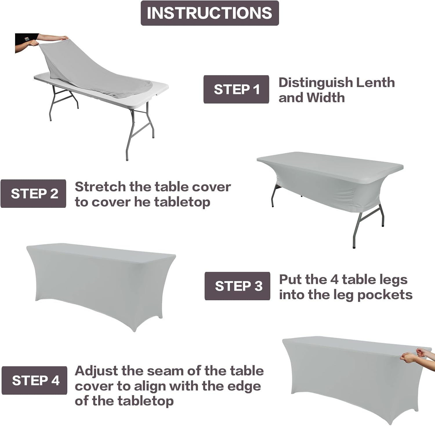 IVAPUPU 6FT Table Cloth for Rectangular Fitted Events Stretch Grey Table Covers Washable Cover Spandex Tablecloth Protector for Party, Wedding, Cocktail, Banquet, Festival