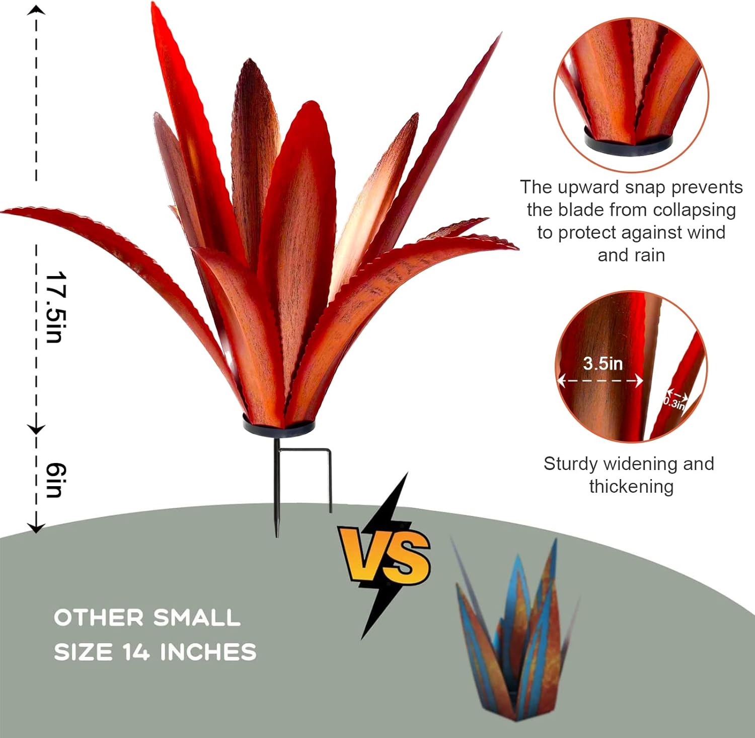 TOMBABY Enlarge Thickened Wind Resistant Metal Agave Garden Art Metal Plant Country Garden Sculpture Statue Outdoor Decoration Agave Metal Plant Courtyard Garden Lawn Ornament Gift (2, 12 Leaves red)