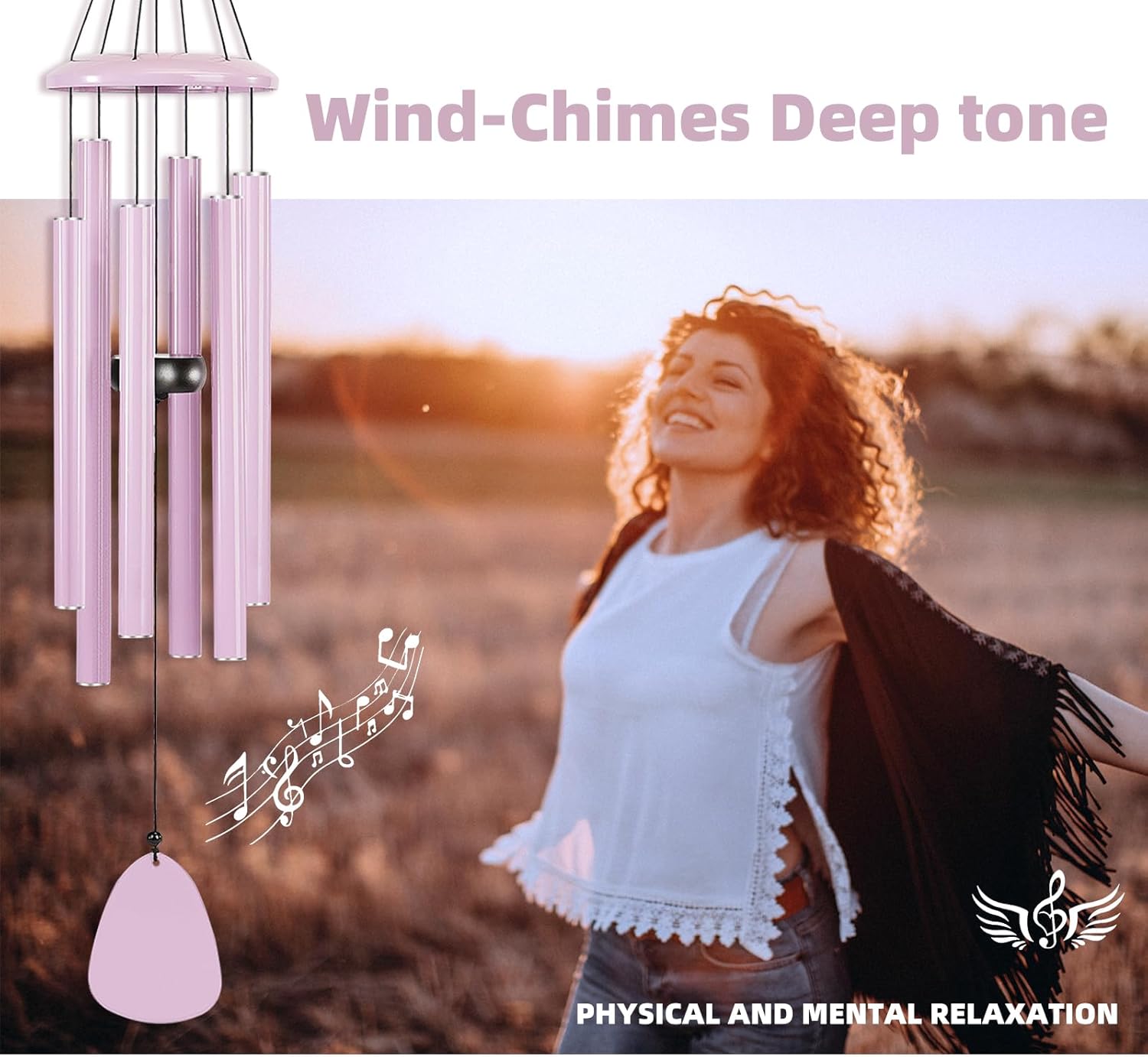 Wind-Chimes-Outdoor-Deep-Tone, Large Soothing Melodic Tones Windchimes, Wind Chimes for Outside, Memorial Wind Chime Best Gift for Mom Women Grandma Neighbors(32" Pink Coated Aluminum)