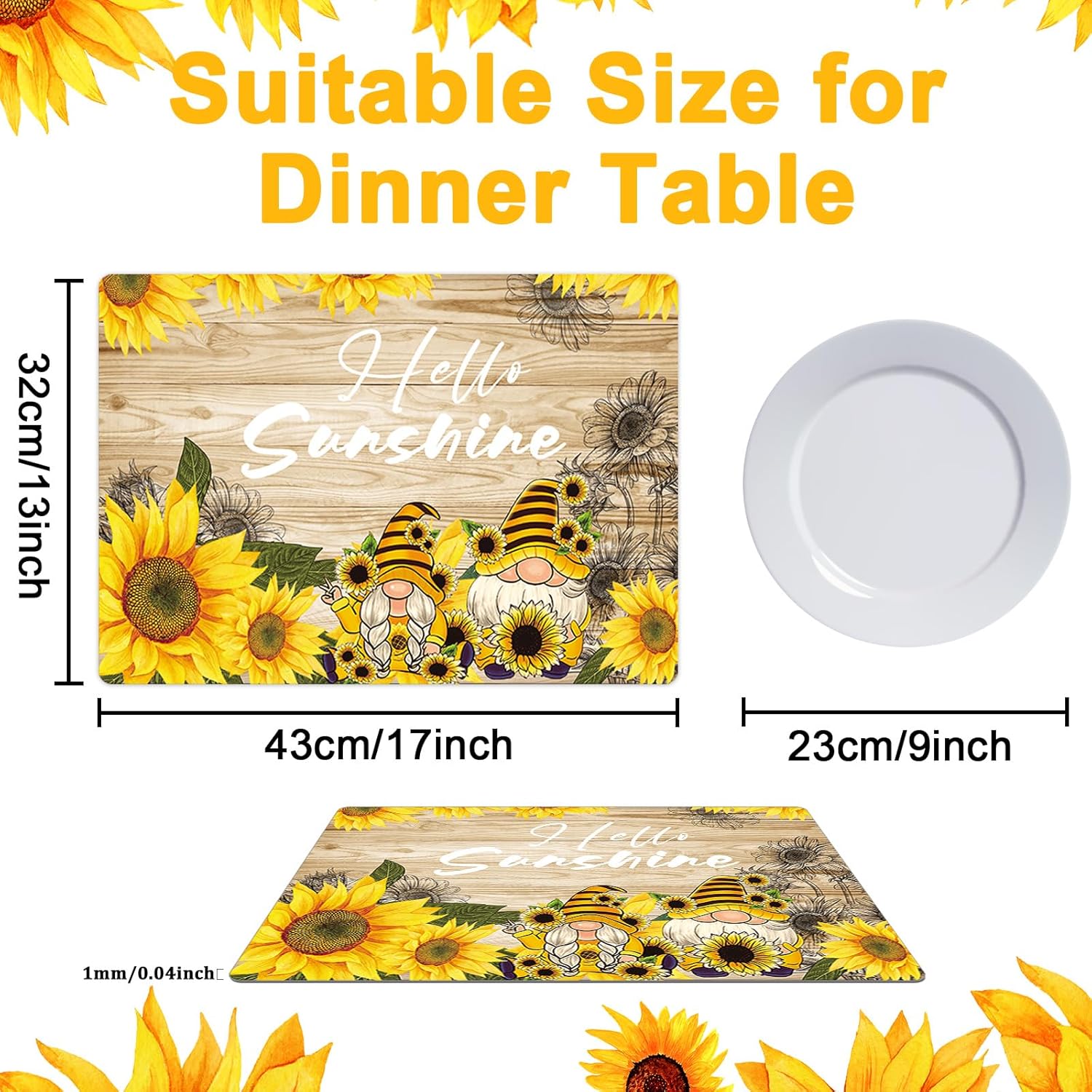 - 【Eye-Catching Design】Elevate your sunflower themed dining experience with our sunflower placemats! The design of the sunflower placemat incorporates classic elements of the sunflower. Sunflower placemats add a touch of brilliance to your table setting. Impress your guests and create an unforgettable cheerful atmosphere for your party.