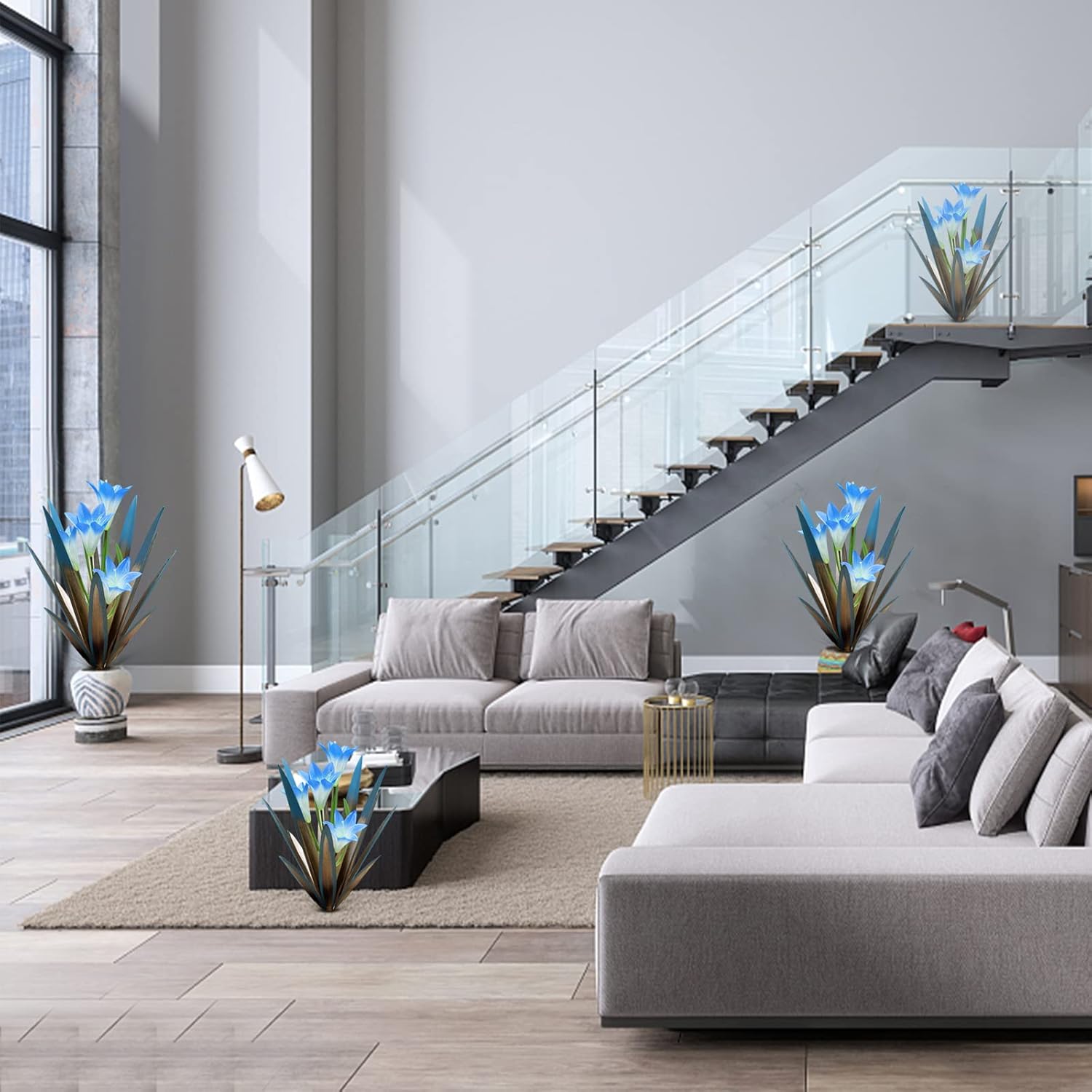 Homight Metal Agave Plant Outdoor Decoration Outdoor Garden Decoration Lily Mexican Yard Art Plant Garden Agave Lily Decorative Garden Gift… (3 Big Blue Lilies) (HM-390-345)