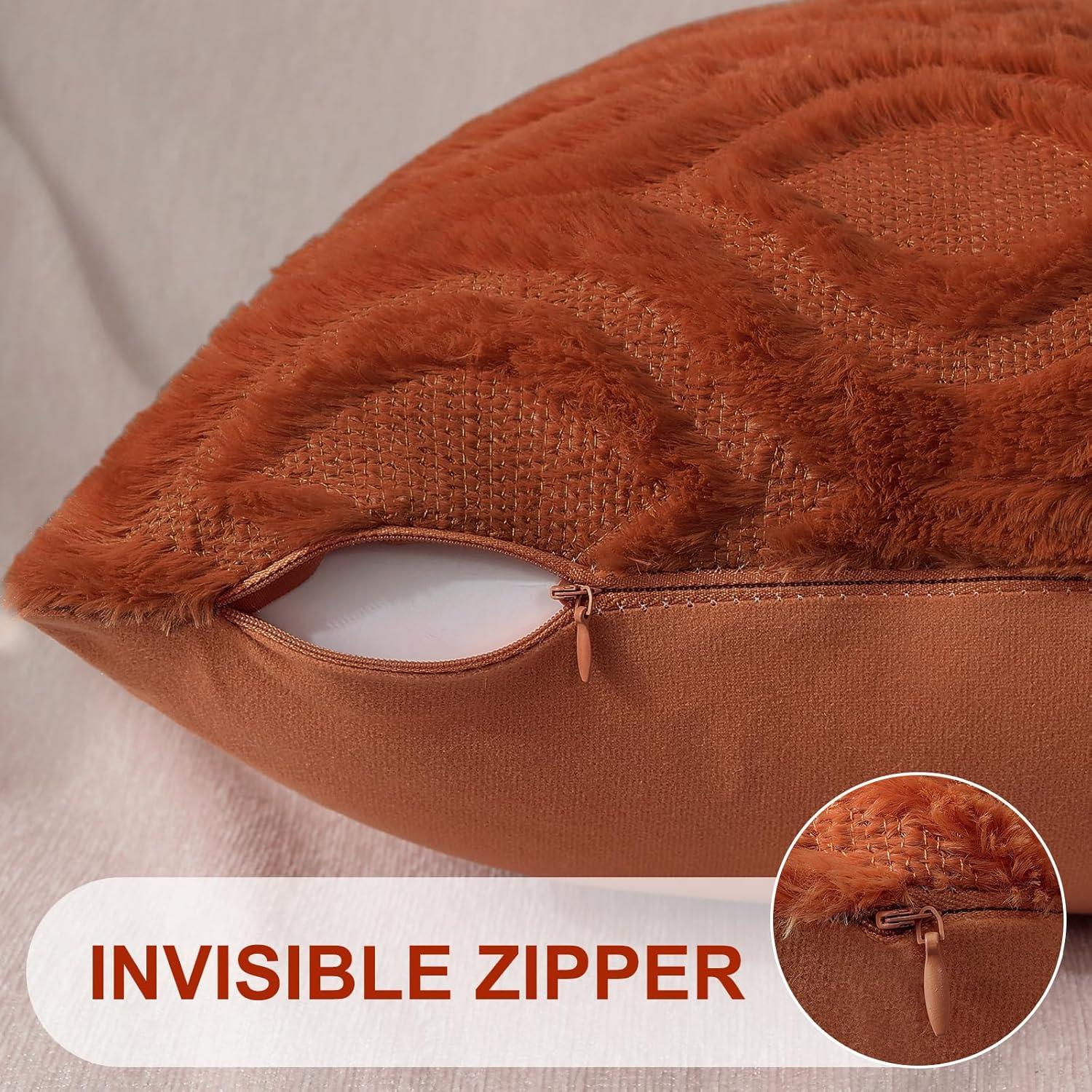 decorUhome Fall Throw Pillow Covers 20x20 Inch Set of 2, Soft Plush Decorative Faux Fur Rust Solid Couch Pillow Covers, Accent Farmhouse Neutral Square Euro Pillow Cases for Sofa Bed Living Room