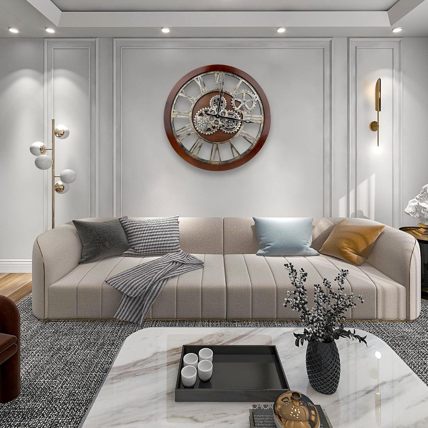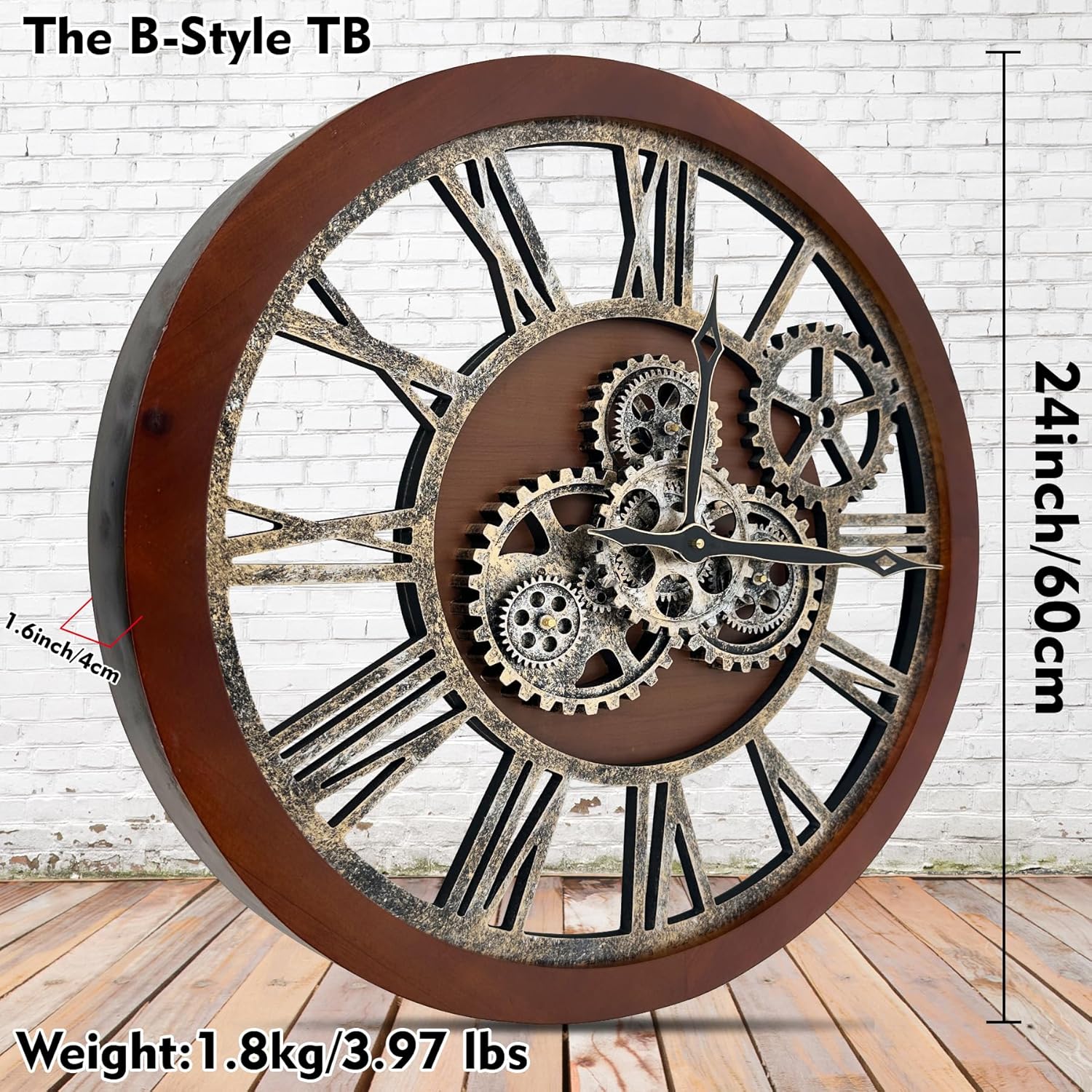 - WIDE APPLICATIONS: Oversized wall clock is not only a timepiece, but also a piece of artwork, greatly adding charm to a room, like living room, farmhouse, fireplace, bedroom or dining room, studio, gallery, loft, cafe, bar, club, etc. Rustic vintage wall clock will become an instant conversational piece for the moving gears and how cool it looks. Also awesome gifts for families or friends