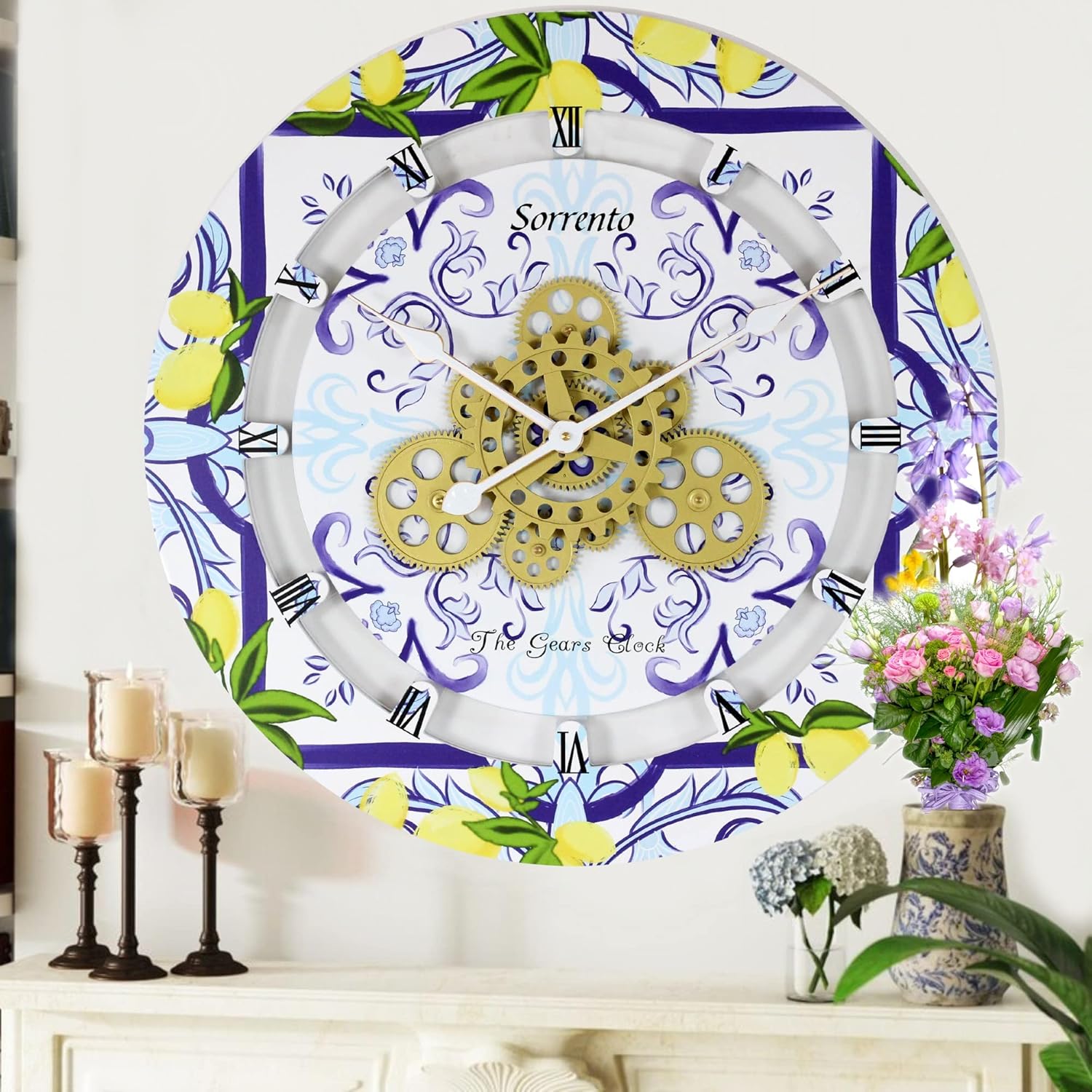 - Wall Clock Italy Collection with Real Moving Gears is an Art Timepiece inspired by the Famous Amalfi coast Tiles in Italy