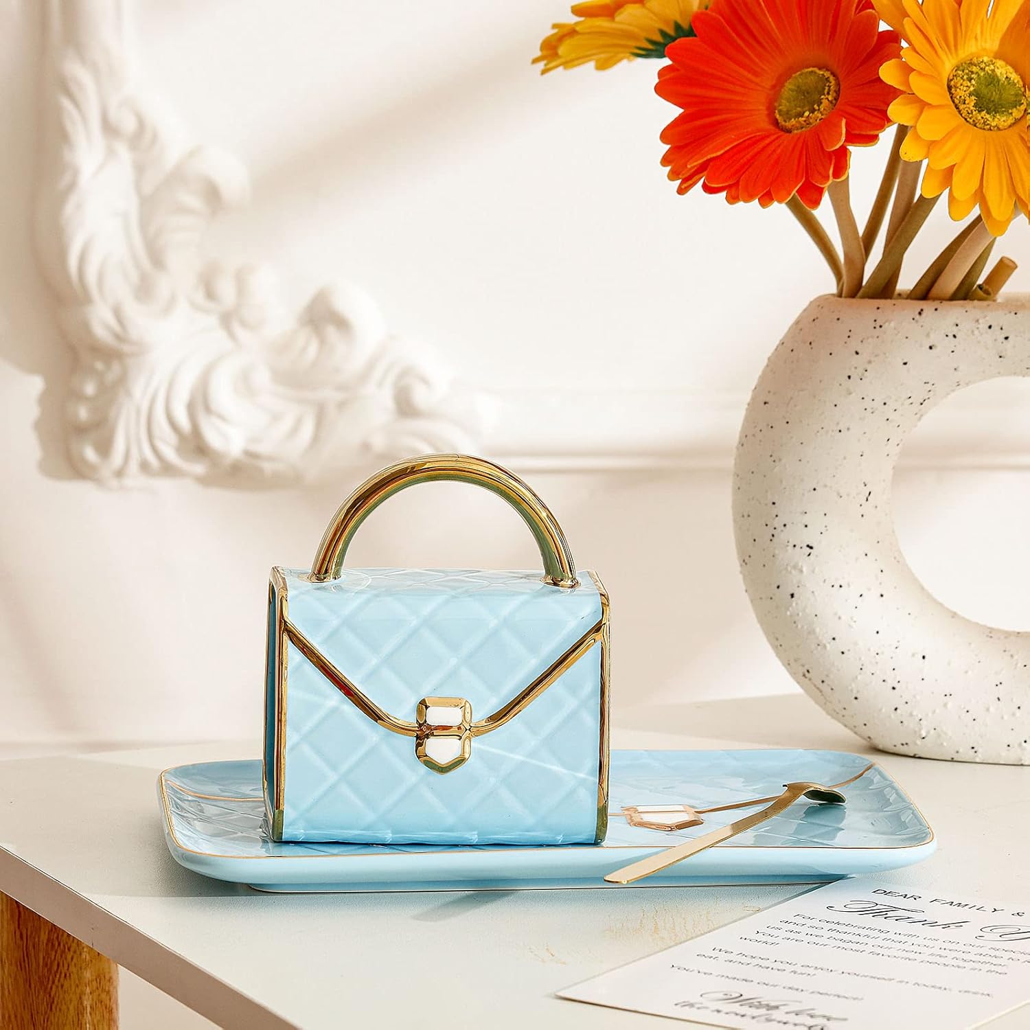 - Delicate Coffee Mug Set: the package comes with 1 piece of handbag shaped blue mug and it is equipped with a spoon and saucer, which is thoughtful set for your daily use; They are well packaged in a gift box, reading for your gift giving needs