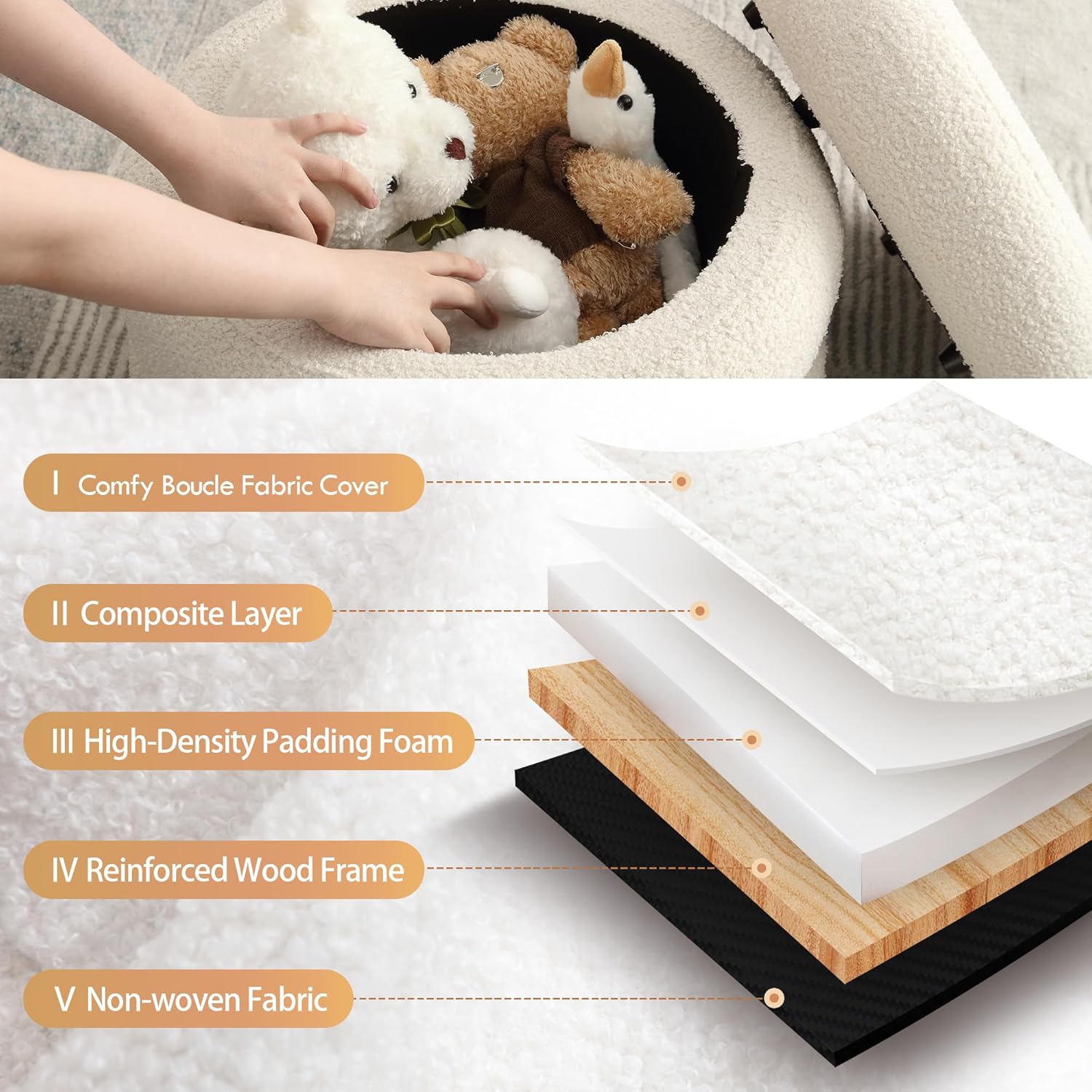 ONEVOG 20" Round Storage Ottoman with Removable Lid, Off-White Boucle Fabric Footrest Pouf, Sherpa Tufted Small Coffee Table Vanity Ottoman Foot Stools for Living Room Couch, Bedroom, Dorm, Nursery